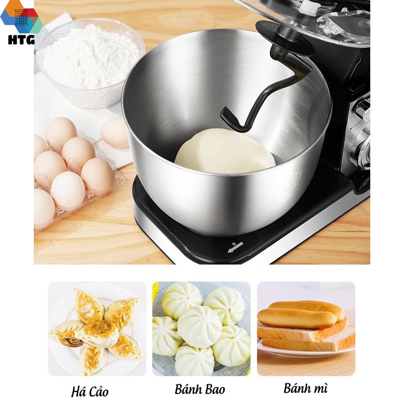 - Làm bánh, trộn salad, xay thịt, xay hoa quả, trái cây, làm mì sợi, cán bột, làm hoành thánh, làm há cảo Một chiếc máy toàn năng! Với chất liệu khung vỏ thép 304 mang đến trải nghiệm đỡ ồn ào, độ rung cũng được giảm đáng kể khi nhào bột, và đặc biệt, dễ dàng vệ sinh thân máy Thích hợp đầu xay thịt nạc, giúp người tiêu dùng dễ dàng chế biến các món bánh 1 cách tiện lợi hơn Bộ sản phẩm 9 trong 1