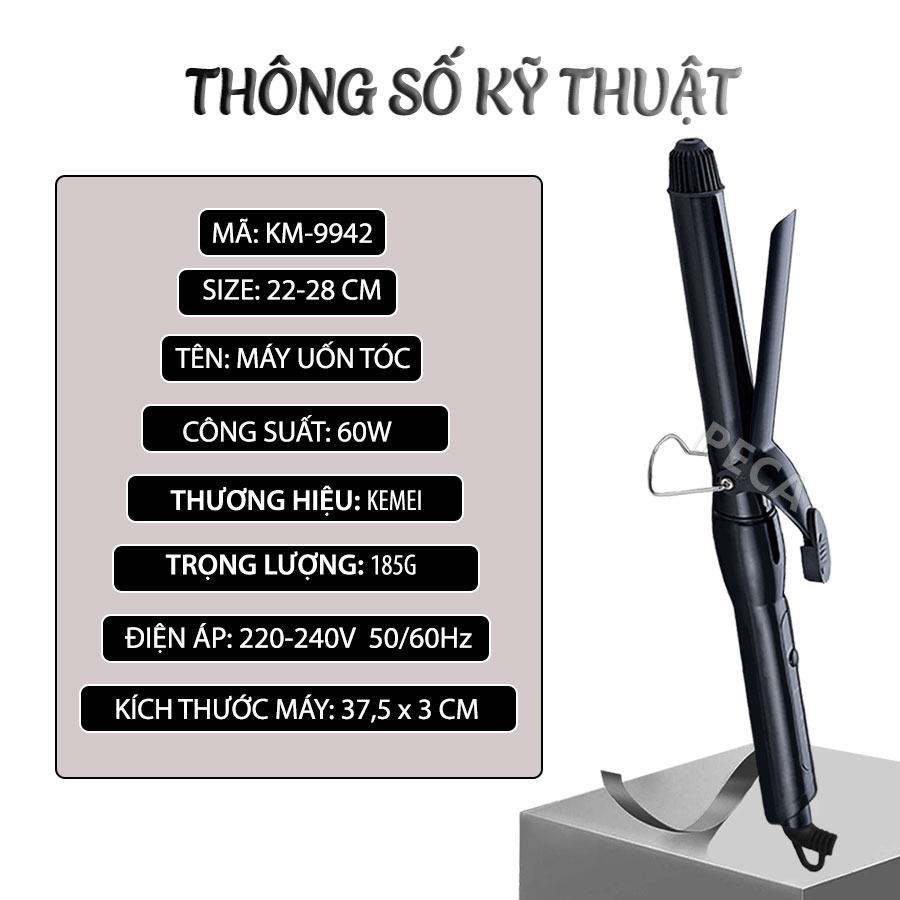 ✨Máy uốn tóc Kemei KM-9942 điều chỉnh 4 mức nhiệt độ chuyên nghiệp dây điện xoay 360 độ thuận tiện uốn xoăn, uốn lọn tạo nhiều kiểu phù hợp với mới loại tóc