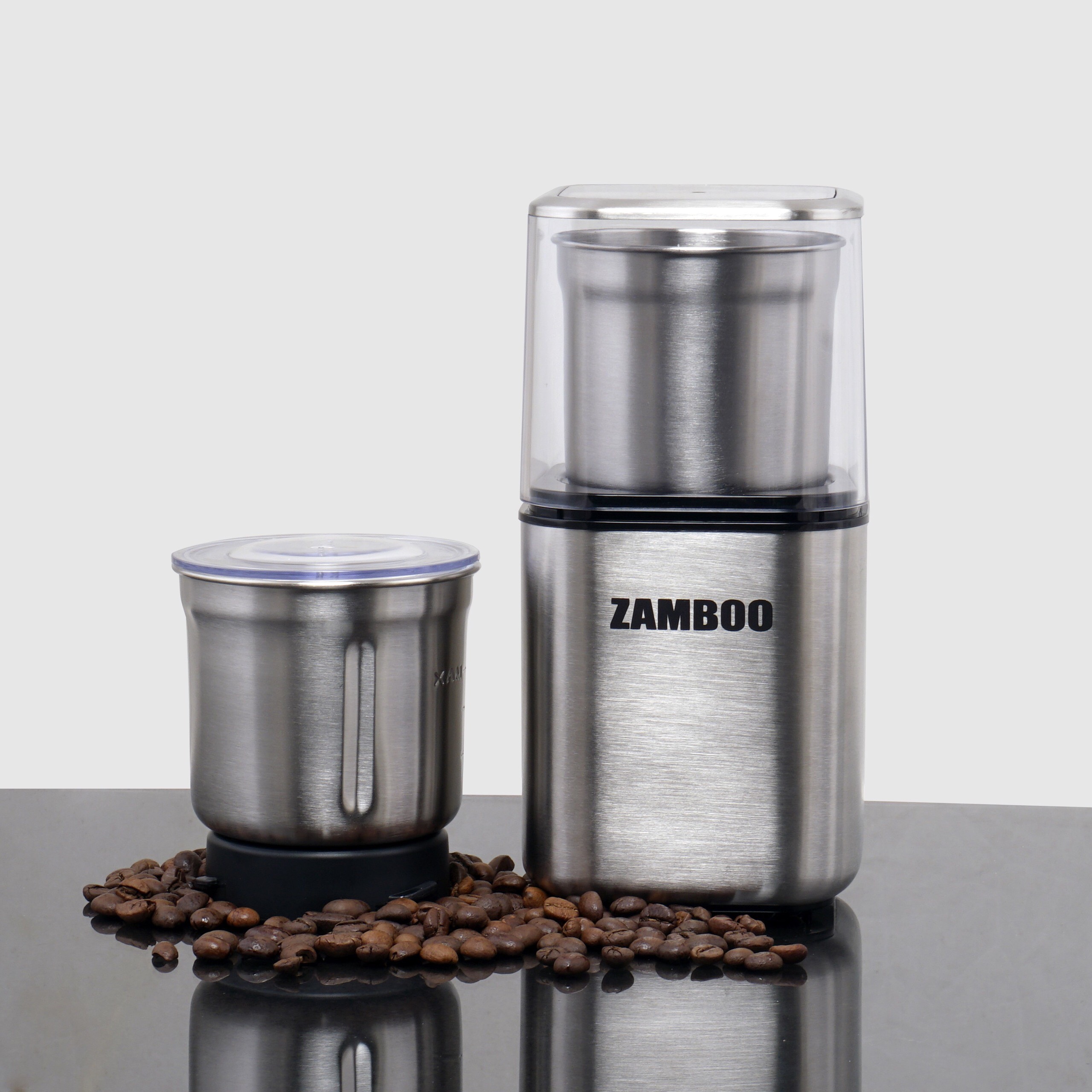 -Máy xay 2 chức năng Zamboo là vật dụng dùng trong nhà bếp, thiết kế cho các chức năng xay đồ khô và xay đồ ướt, với 2 cốc xay bằng inox có thể tháo rời để thay thế. Cối xay khô thiết kế 1 lưỡi dao đôi, dùng xay các loại hạt khô, gia vị khô như cà phê, tiêu, đậu, gạo rang, hay các loại hạt ngũ cố Cối xay ướt thiết kê 2 lưỡi dao đôi, dùng xay đồ có nước như gừng, tỏi, ớt, nghệ