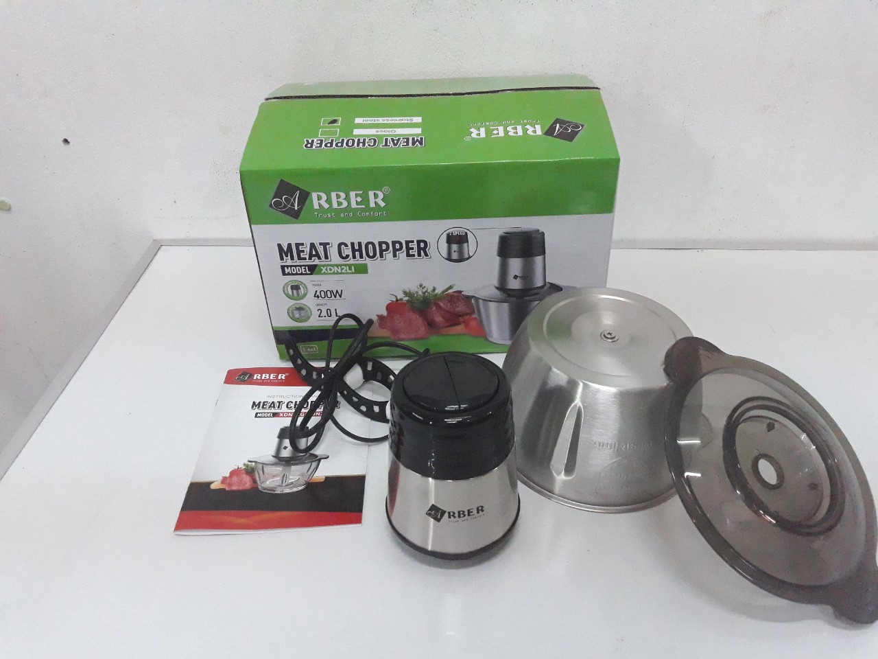 Với công nghệ chế tạo Arber XĐN2LI - Máy xay thịt nhanh chóng và an toàn, vệ sinh thuận tiện. Thiết kế đẹp mắt giúp tôn vinh không gian bếp, vận hành tối ưu, Máy xay đa năng Arber được thiết kế với 2 tốc độ cùng hệ lưỡi dao kép xoáy ngược đẩy thực phẩm xuống đáy bảo đảm không bị tràn ra ngoài. Phần thân trên động cơ được thiết kế bằng inox sang trọng với 3 lớp cách điện bên trong.