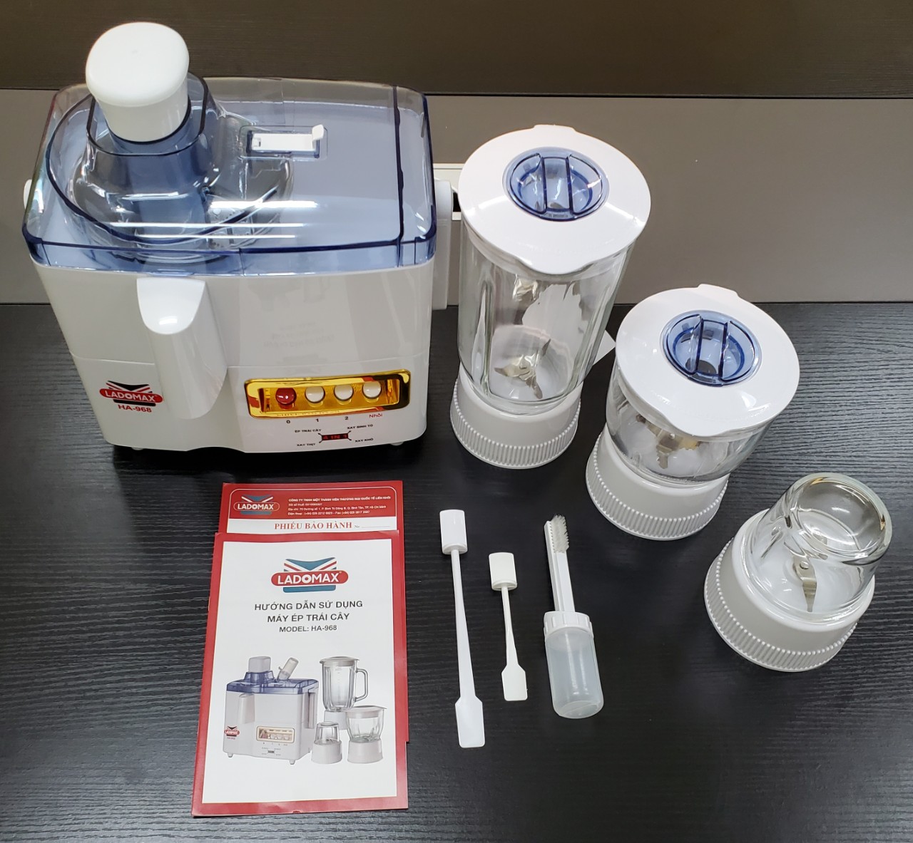 Máy xay đa năng Ladomax có nhiều cối riêng để xay sinh tố, thịt, xay tỏi và ép trái cây | HA-968