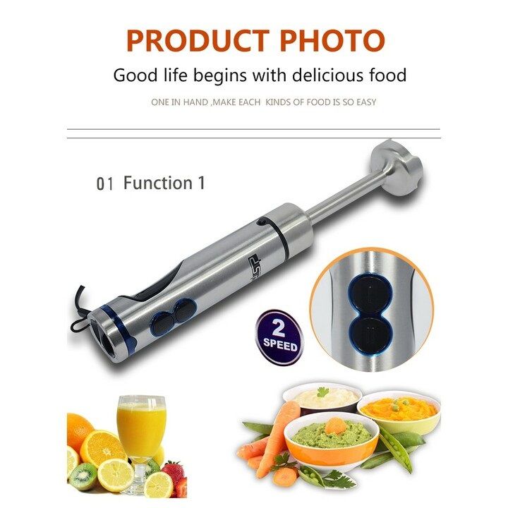 Công dụng: Đa chức năng: xay thịt, xay đá, cá, rau quả, đánh trứng, làm nước sốt... Chi tiết: Tiện lợi để chế biến thực phẩm cho trẻ em . Thiết kế gọn nhẹ, dễ sử