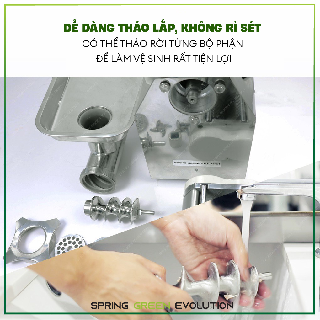 – Có thể sử dụng cho nhiều loại nguyên liệu khác nhau như là thịt bò, cá – Công suất hoạt động tối đa của máy lên đến 180kg/h – Có thể sử dụng như máy xay ớt bột, rất tiện lợi – Có nhiều đầu cắt khác nhau giúp cho máy có thể dùng ở chế độ xay nhuyễn, thái miếng hay thái sợi theo nhu cầu của người sử dụng. – Lưỡi cắt sắc, chắc chắn, được thiết kế đặc biệt dành riêng cho chế độ xay nhuyễn, xay xương hoặc cũng có thể cắt sụn dễ dàng – Động cơ bằng đồng có công suất 1300w, độ bền cao. – Sử dụng đơn giản với nguồn điện tại gia đình 220V – Chất liệu máy được làm từ thép chống gỉ 304, dày dặn, đảm bảo an toàn thực phẩm 100% – Tất cả các bộ phận có thể tháo ra để vệ sinh dễ dàng – Sản phẩm được bảo hành chất lượng cùng với các dịch vụ hậu mãi chu đáo