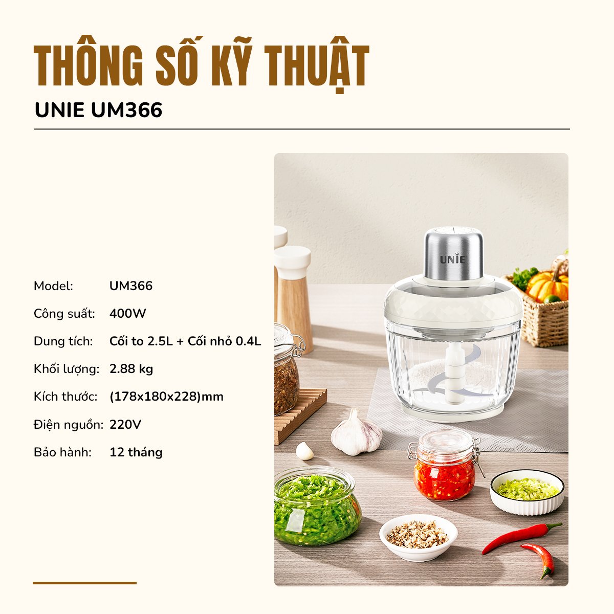✨Máy xay thịt UNIE UM366, công suất 400W, 2 cối thủy tinh tiện lợi, động cơ đồng cao cấp; xay thịt, đánh ruốc, bóc tỏi tiện lợi; hàng chính hãng bảo hành 12 tháng