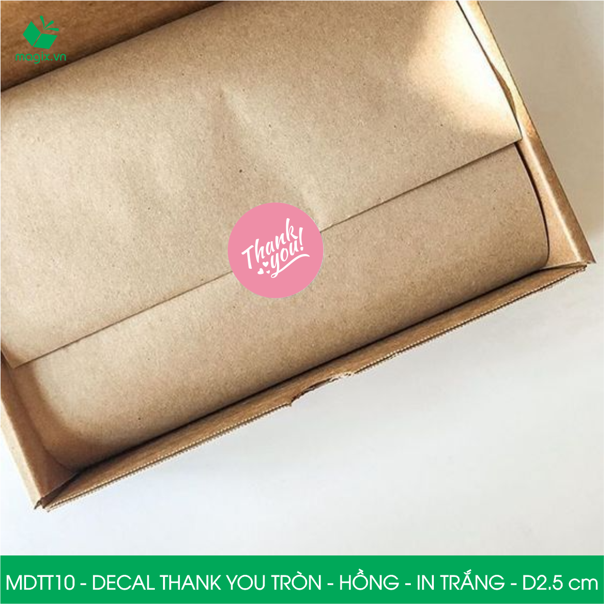 Decal - sticker Thank You là loại nhãn dán có nội dung "Cám ơn" được thiết kế theo hình chữ nhật. Decal Thank You thường được sử dụng để trang trí đóng gói thời trang,