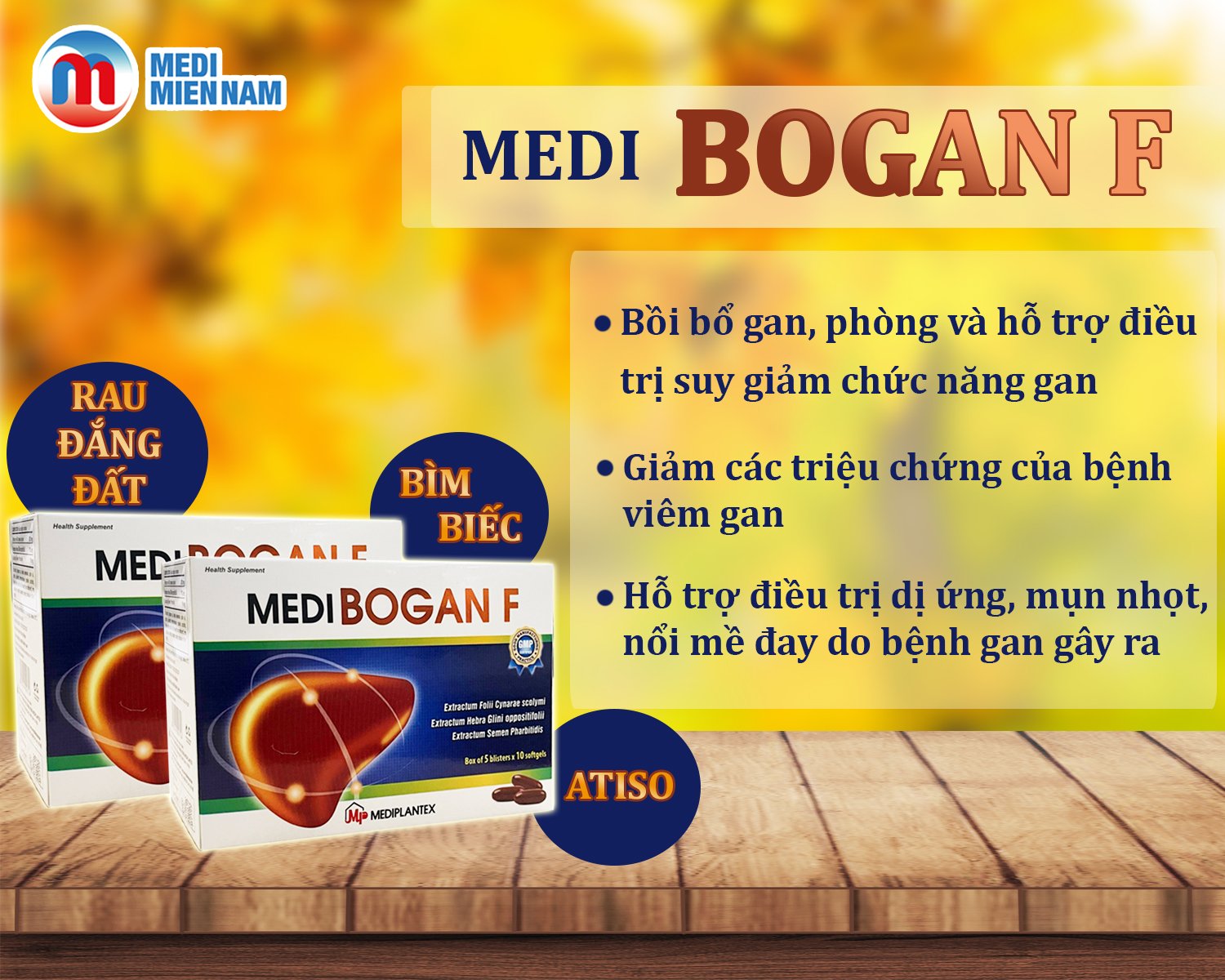 ✨Medibogan F Mediplantex - hỗ trợ bảo vệ tế bào gan, giải độc gan, giúp mát gan, lợi mật, lợi tiểu Hộp 50 viên