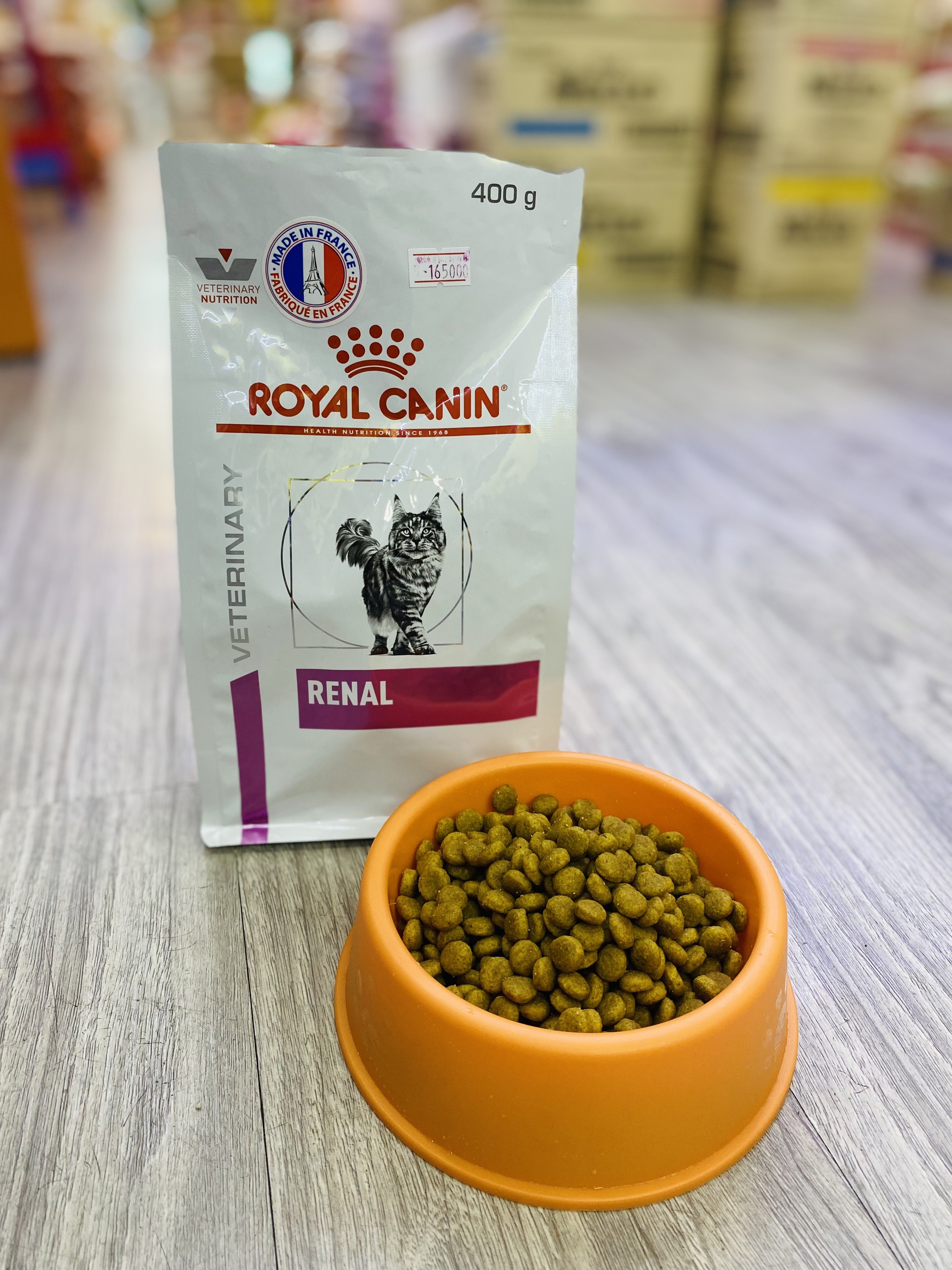 Cho mèo sử dụng chế độ ăn Royal Canin Renal ngay khi nồng độ creatinine* vượt khỏi chỉ số tham chiếu (CKD cuối giai đoạn 2) , trước khi tình hình biến xấu và chuyển thành bệnh mạn tính. Trong trường hợp mèo bỏ ăn có thể chuyển sang chế độ ăn Renal mà không cần bước chuyển đổi (quy tắc đổi thức ăn 7 ngày). Theo dõi sức khỏe thận ở mèo dựa vào bảng chỉ số khoáng chất trong máu (Renal panel): trường hợp lượng canxi trong máu tăng cao hoặc rối loạn chỉ số khoáng chất khác (VD: Hạ nồng độ Kali trong máu).Trong hầu hết các trường hợp, mèo có thể tiếp tục duy trì sử dụng Royal Canin Renal suốt đời.