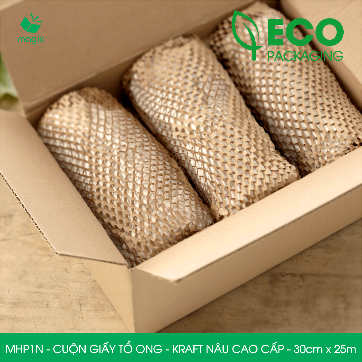 ✨MHP1N - 30cm x 25m - Cuộn giấy tổ ong chống sốc - Kraft nâu Cao Cấp - Giấy gói hàng, gói quà