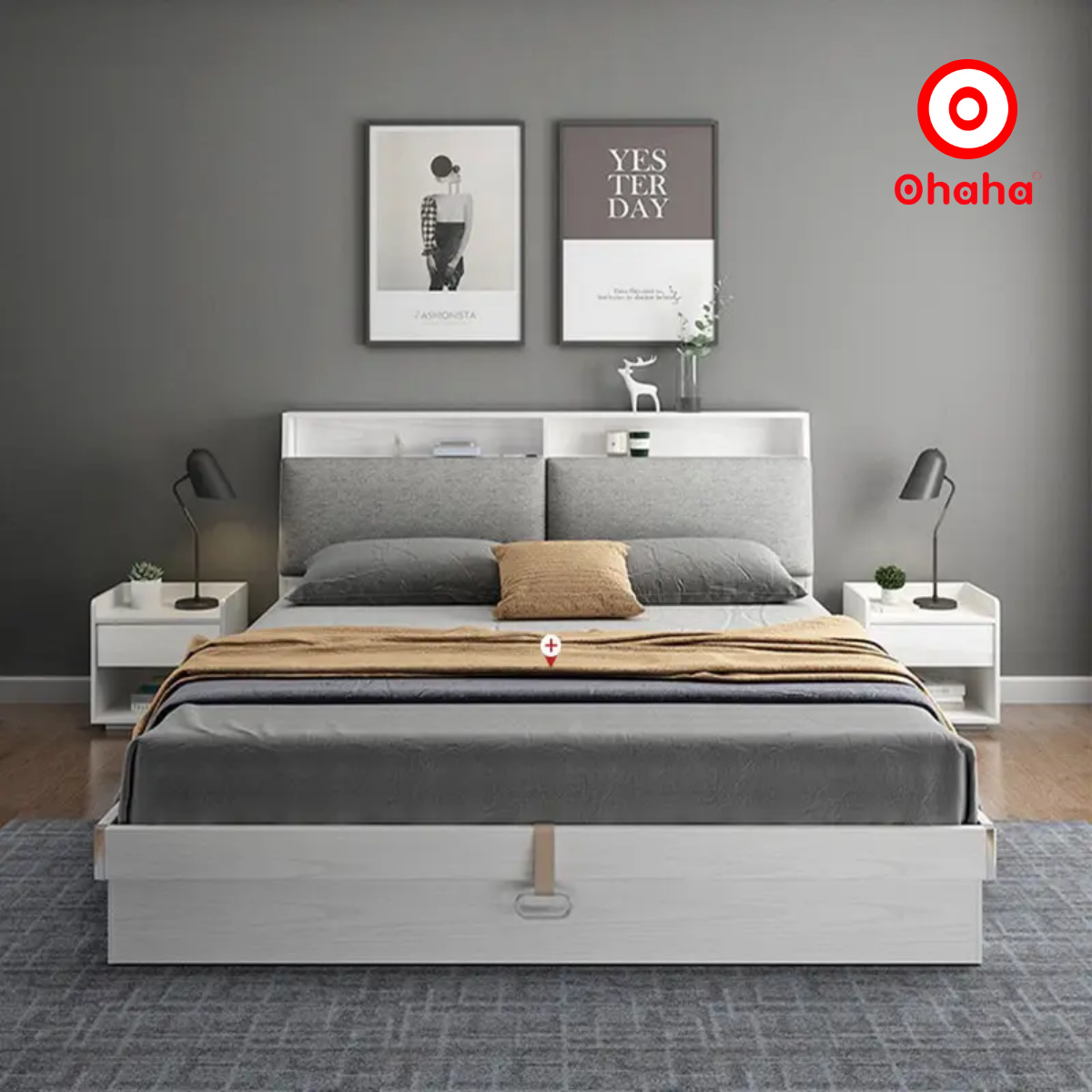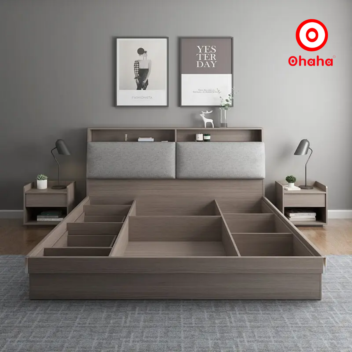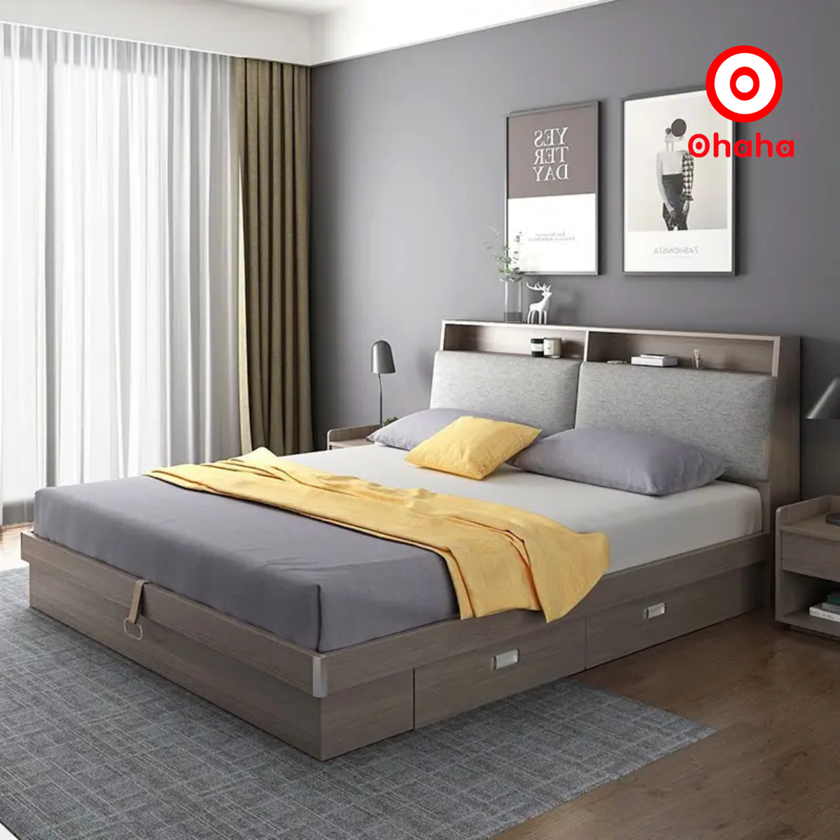 GIƯỜNG NGỦ GỖ CÔNG NGHIỆP BỌC NỆM OHAHA - GN018: TINH TẾ VÀ TIỆN DỤNG