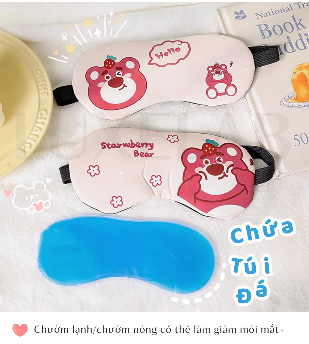 Bịt Mắt Ngủ Gấu Dâu Có Túi Làm Mát – Giấc Mơ Êm Ái