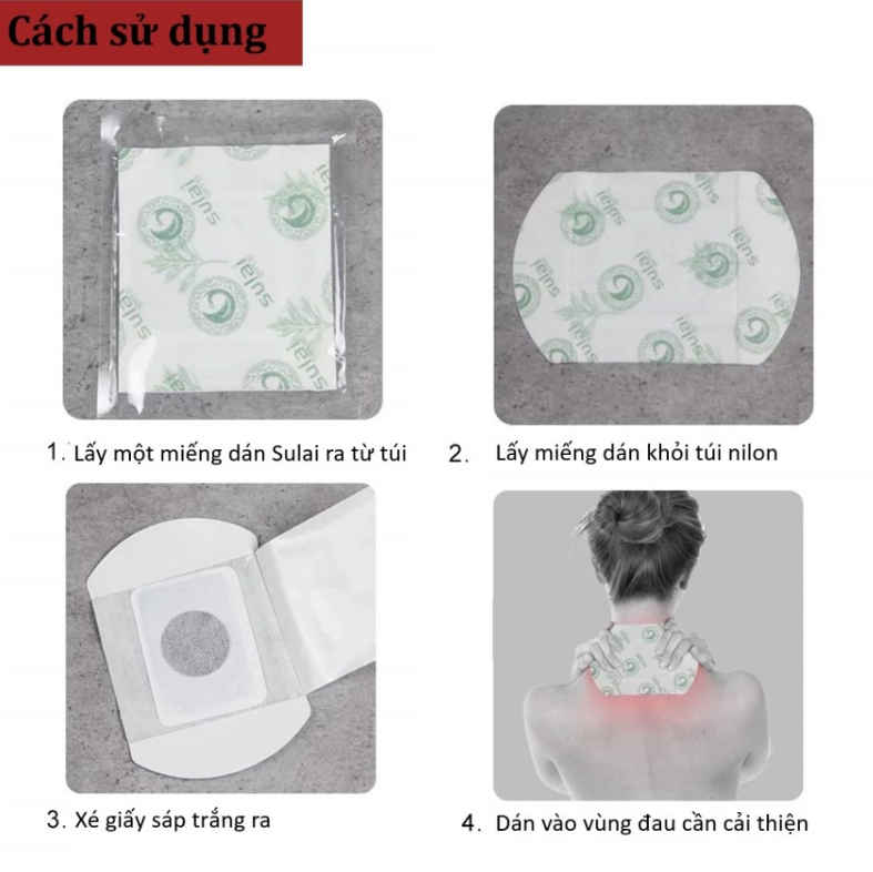 Miếng dán đem lại cảm giác ấm nóng để làm giảm đau, nó có thể được sử dụng trong 6-8 giờ.