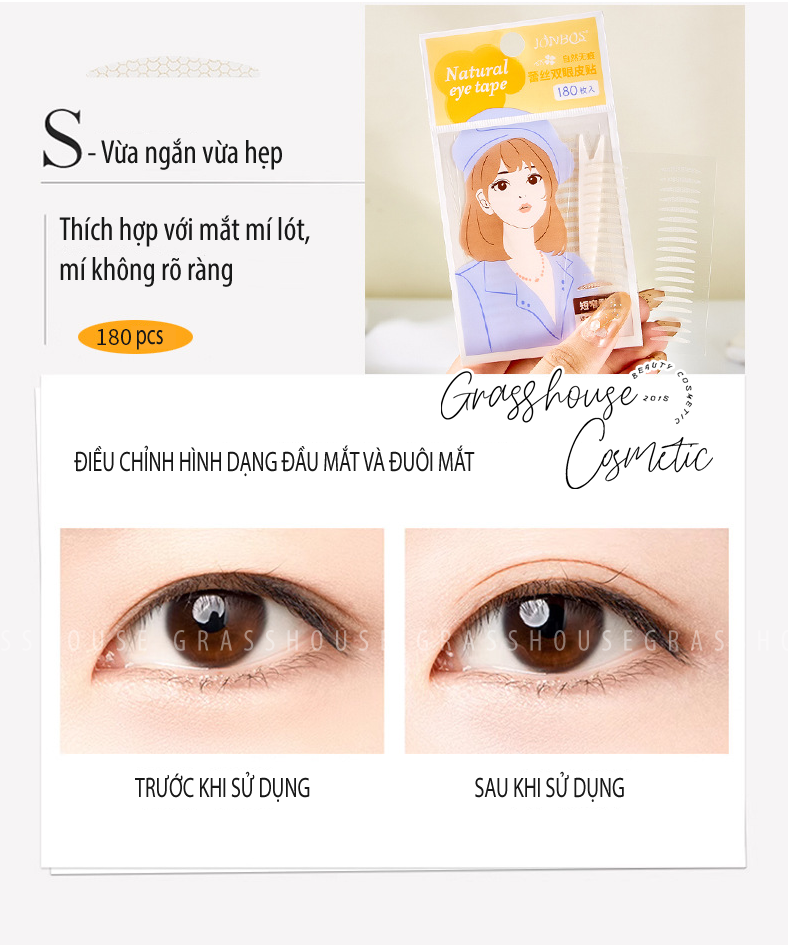 Miếng dán kích mí mềm dẻo, trong suốt là sản phẩm tiện lợi giúp đôi mắt có 2 mí đều nhau, tạo mí mắt đẹp tự nhiên. Giải pháp cho mắt một mí, mí lót