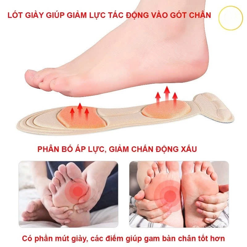 - Giảm áp lực: Lót giày cao gót giúp giảm áp lực lên các điểm tiếp xúc chính của chân, như ngón chân và gót chân. Điều này giúp giảm nguy cơ đau và mỏi chân khi đi giày cao gót trong thời gian dài.