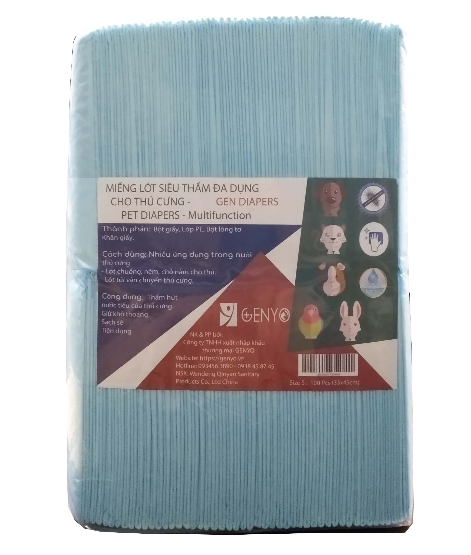 THÔNG TIN SẢN PHẨM THÔNG TIN CHI TIẾT Xuất xứ Trung Quốc Chất liệu Bông cao cấp siêu thấm Quy cách Miếng lẻ/ bịch nguyên HDSD Sản phẩm dùng để lót chuồng, túi vận chuyển,