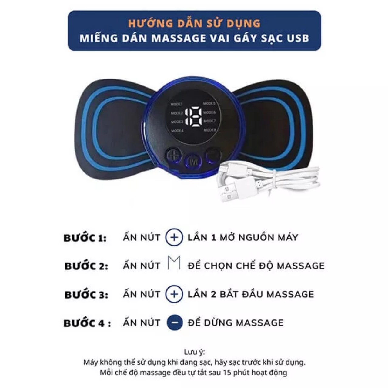 Miếng Massage Xung Điện Cổ Vai Gáy, Bắp Tay, Lưng Bằng Sung Điện đỡ đau Nhức Hiệu Qủa -Máy mat sa thân hình 10 Chế Độ - HÀNG CHÍNH HÃNG MINIIN