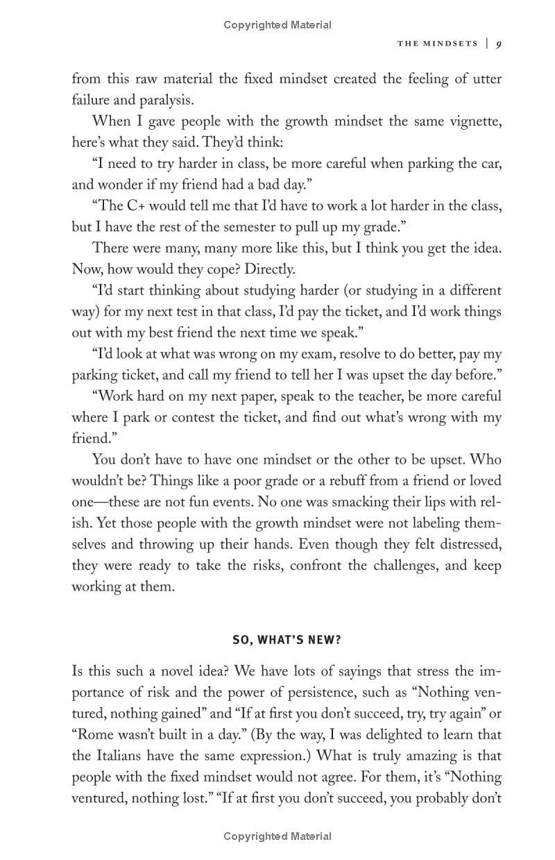 Dweck explains why it’s not just our abilities and talent that bring us success–but whether we approach them with a fixed or growth mindset. She makes clear why praising intelligence and ability doesn’t foster self-esteem and lead to accomplishment, but may actually jeopardize success. With the right mindset, we can motivate our kids and help them to raise their grades, as well as reach our own goals–personal and professional. Dweck reveals what all great parents, teachers, CEOs, and athletes already know: how a simple idea about the brain can create a love of learning and a resilience that is the basis of great accomplishment in every area .