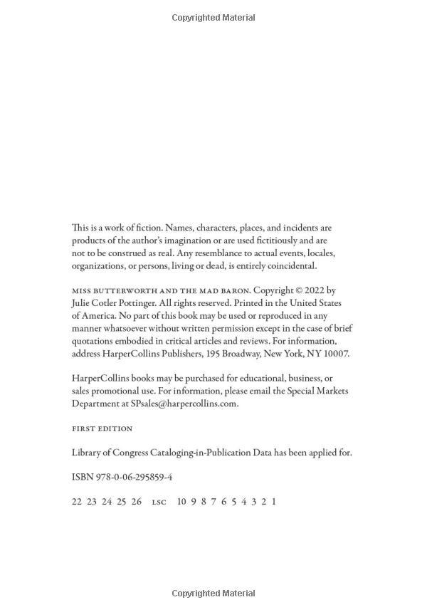 Born into a happy family that is tragically ravaged by smallpox, Miss Priscilla Butterworth uses her wits to survive a series of outlandish trials. Cruelly separated from her beloved mother and grandmother, the young girl is sent to live with a callous aunt who forces her to work for her keep. Eventually, the clever and tenderhearted Miss Butterworth makes her escape . . . a daring journey into the unknown that unexpectedly leads her to the “mad” baron and a lifetime of love.