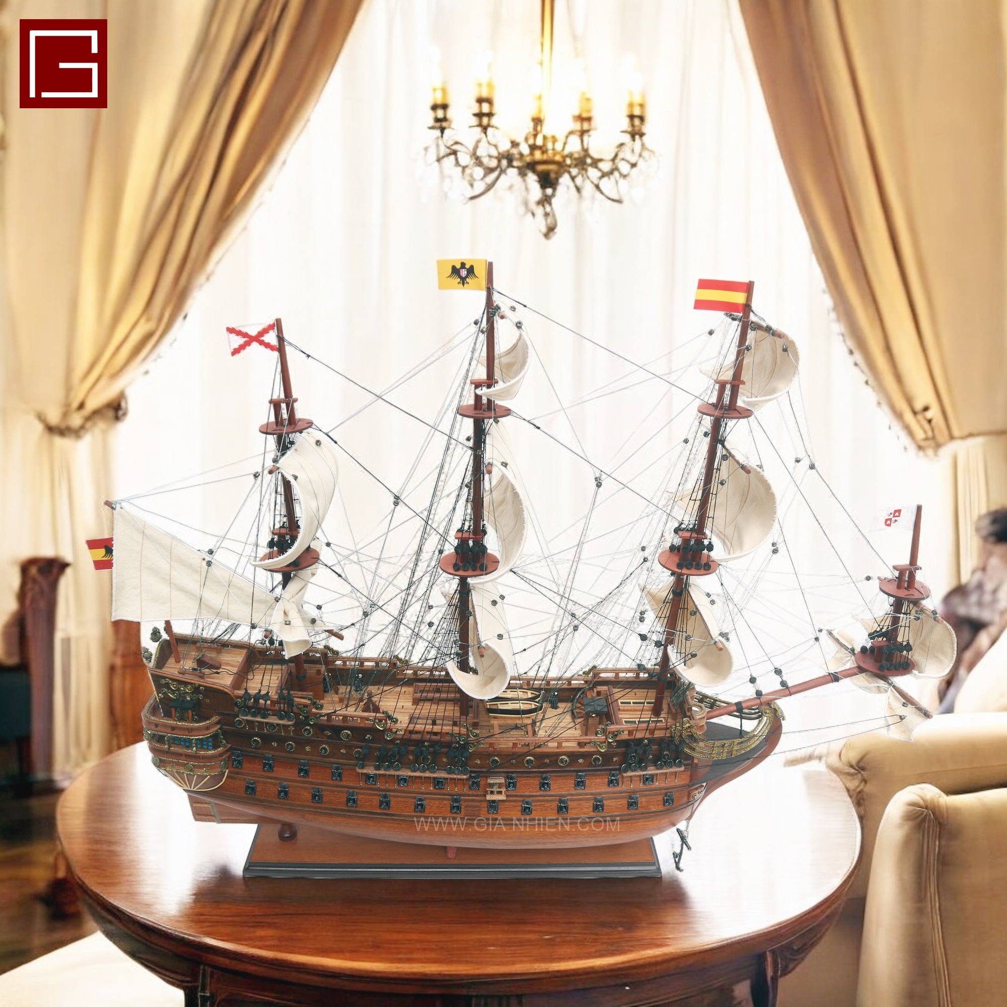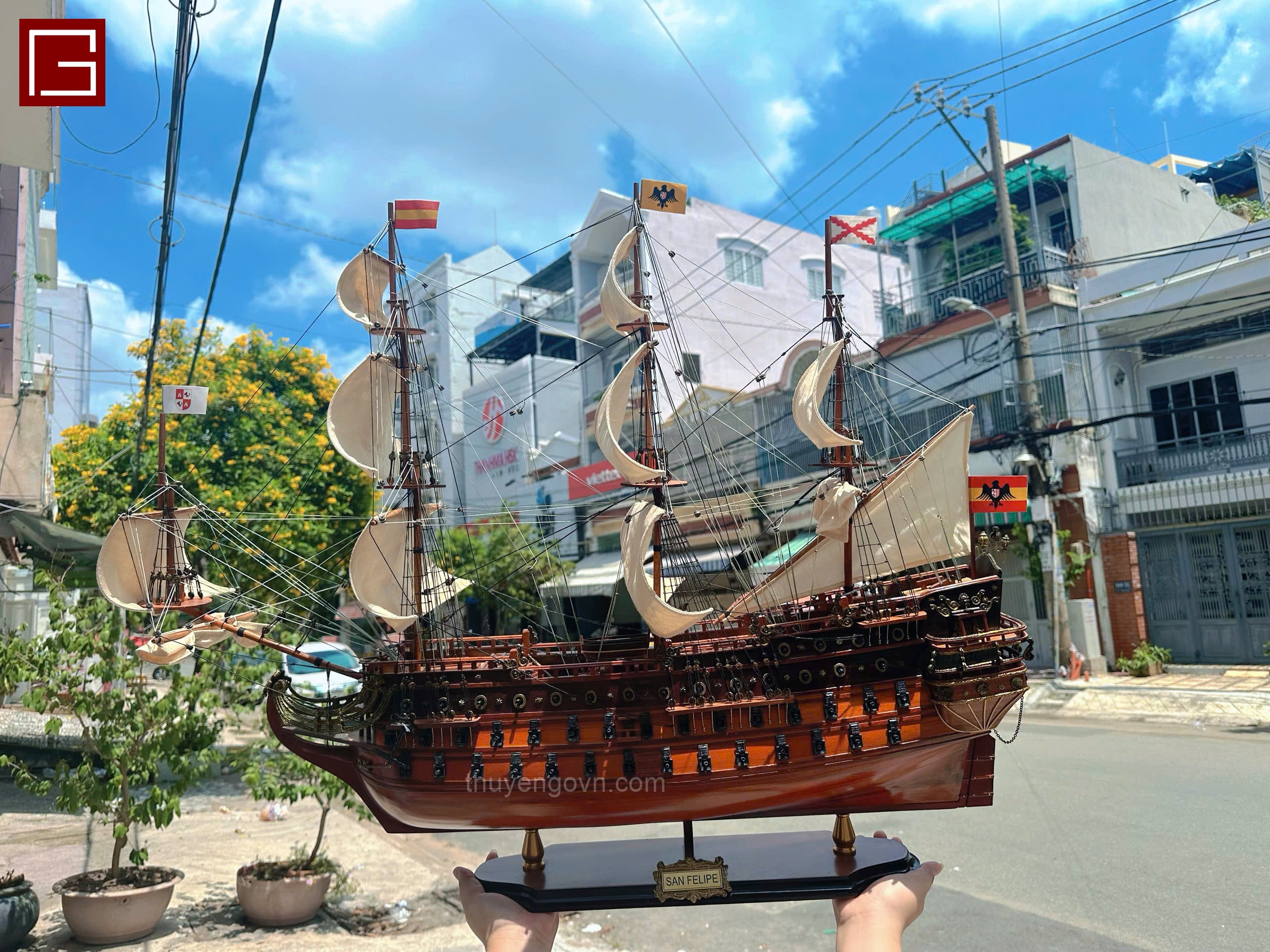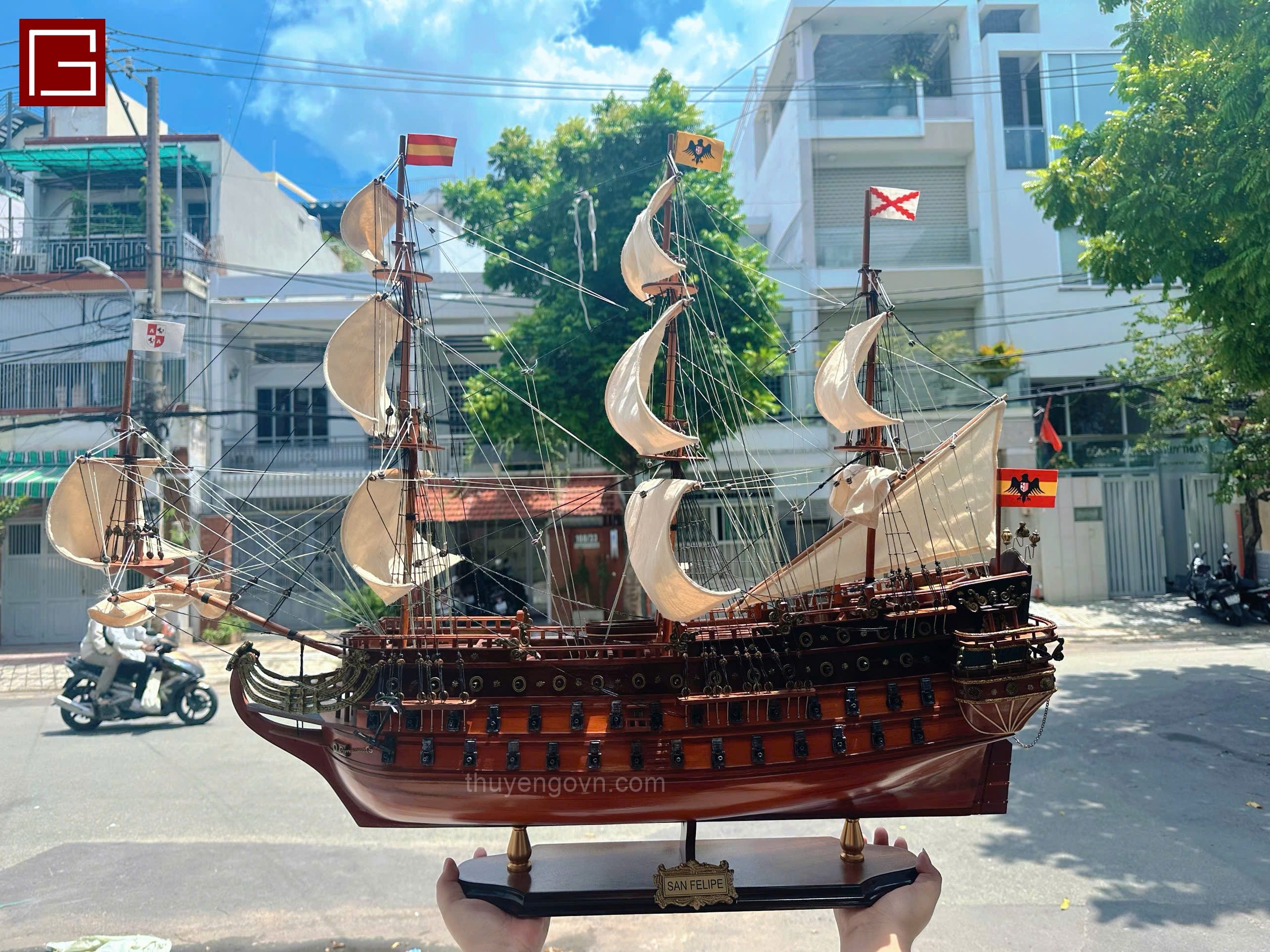 [Giá xưởng] Mô Hình Thuyền Gỗ Trang Trí Phong Thủy Dạng Thuyền Cổ SAN FELIPE 40CM Chính Hãng, Hàng Xuất Khẩu Chất Lượng Cao