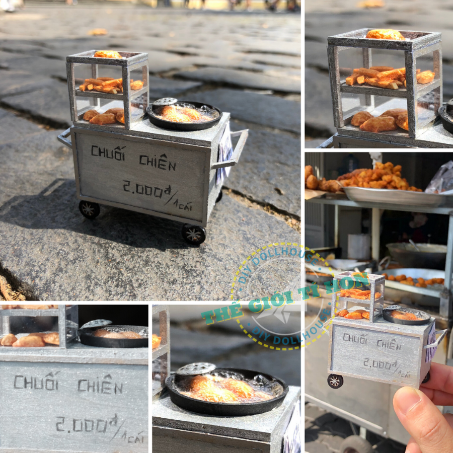 - SẢN PHẨM KHÔNG ÁP DỤNG ĐỔI TÊN BẢNG HIỆU GIÁ SẢN PHẨM CHƯA BAO GỒM THUẾ VAT, KHÁCH CẦN XUẤT VAT XIN VUI LÒNG LIÊN HỆ THẾ GIỚI TÍ HON QUA CHATBOX Giới thiệu Mô Hình Sài Gòn Xưa Và Nay Thu Nhỏ - Xe Chuối Chiên - HR06 ** ĐƠN HÀNG XE HÀNG RONG KHÔNG ÁP DỤNG FREESHIP Ở Sài Gòn, không khó để bạn tìm một xe bán bánh chuối chiên tại các chợ, cổng trường, ngã tư... Vỏ bánh vàng vàng, giòn rụm, kết hợp với sự ngọt lịm của nhân chuối bên trong. Chỉ đơn giản như vậy nhưng những chiếc xe bán chuối chiên, khoai lang chiên nho nhỏ luôn nườm nượp kẻ đến người đi, ăn hết ngày này qua ngày khác vẫn không hết thòm thèm... Mô hình Xe Hàng Rong Sài Gòn Xe Chuối Chiên Thu Nhỏ - HR01 Tìm Hiểu Mô Hình Tí Hon Thông số mô hình