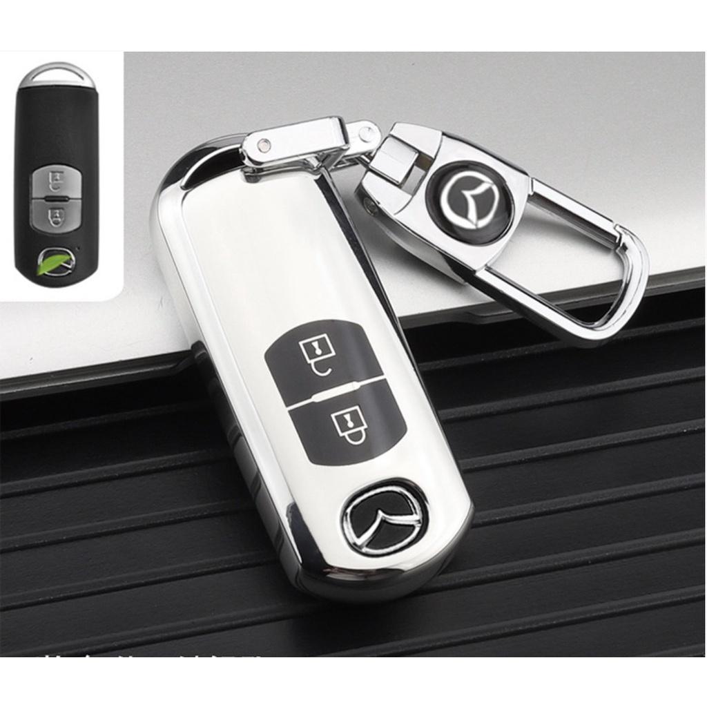 ✨Móc khóa kèm ốp bảo vệ chìa khóa xe Mazda 6, Mazda 3, CX5 CX8, Mazda 2020_2021 nhựa mềm TPU mạ kim loại sáng bóng