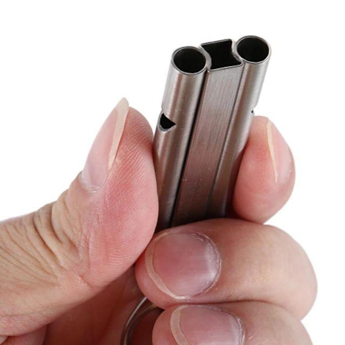 Bộ 2 còi sinh tồn ống képPhát ra tiếng còi với âm thanh lớn, giúp liên lạc với các bạn bè trong trường hợp khẩn cấp khi du lịch dã ngoại, thám hiểm (Chẳng hạn như SOS, bạn cần thổi còi "ba lần ngắn, ba lần dài, và ba lần ngắn"). Có thể treo trên ba lô hoặc dây chuyền rất thời trang, năng động. Dễ dàng mang theo, có thể sử dụng dưới mưa.