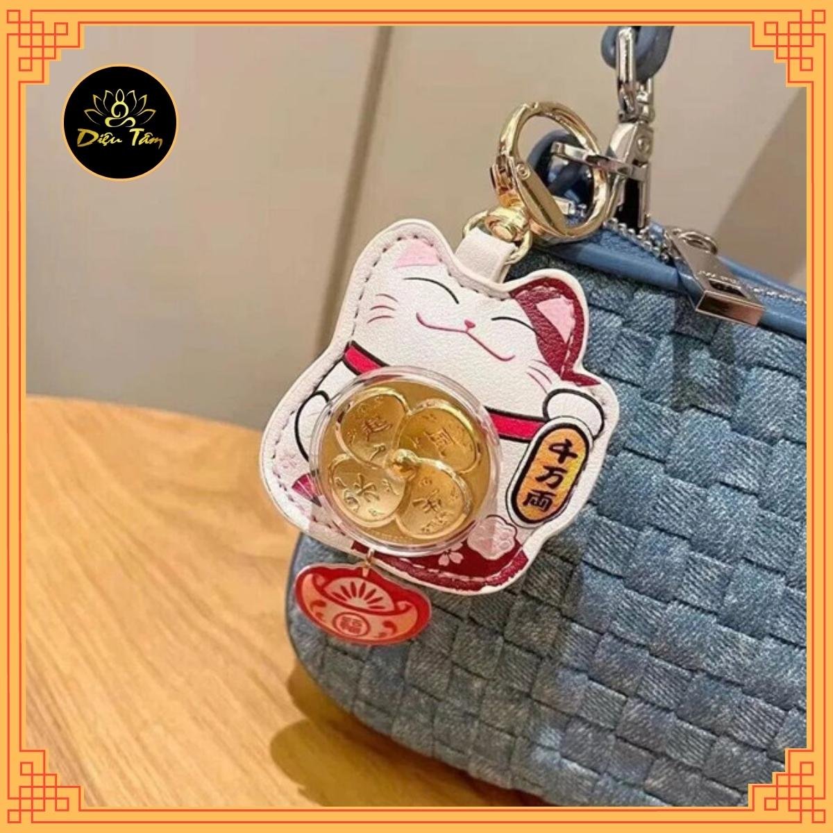 Móc Khóa Mèo Thần Tài Xoay Mạ Vàng