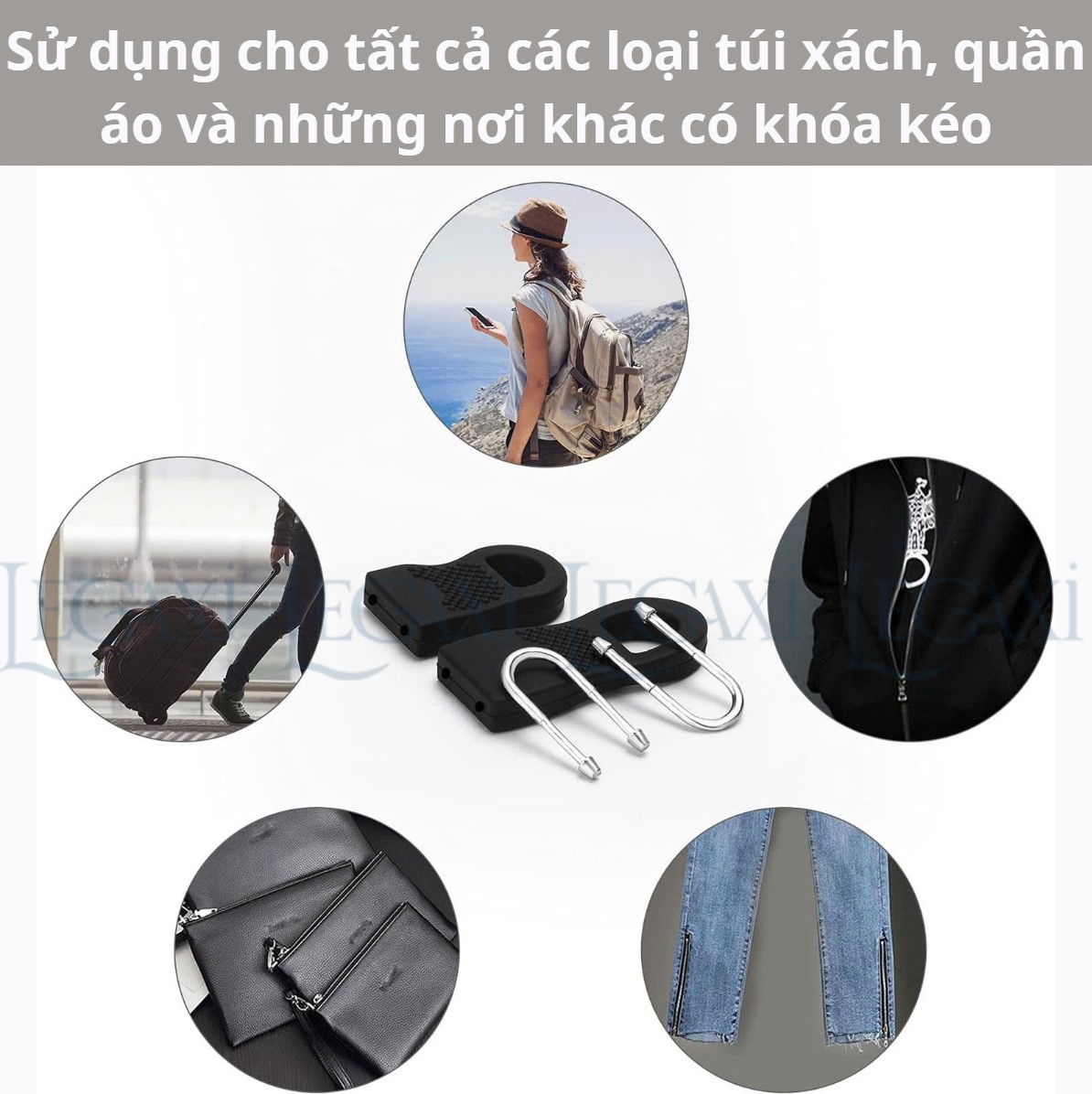 - Gắn rất dễ dàng vào hầu hết các khóa kéo, ví dụ như Balo, Vali, Áo khoác, Túi, Áo khoác, Đồ thể thao, áo khoác xuống,...