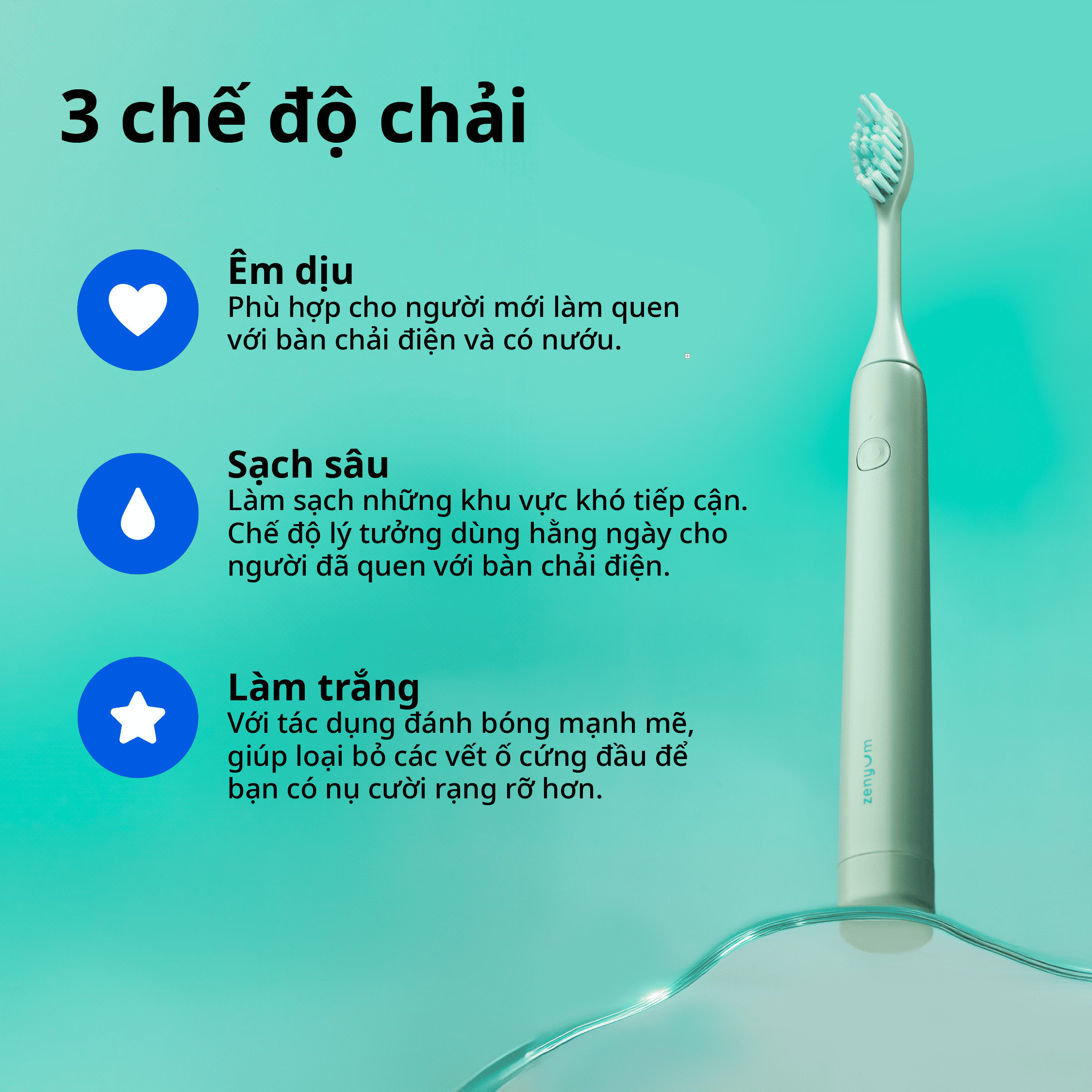 Mua tại TiktokBàn Chải Điện ZenyumSonic Spark - Màu Tím Lilac / Kem / Xanh Sage Chào mừng bạn đến với ZenyumSonic Spark - Bắt đầu chăm sóc răng miệng dễ dàng cùng bàn chải điện sóng âm Thông minh, Gọn nhẹ, Cùng Spark sẵn sàng tỏa sáng! Bạn đã sẵn sàng để nâng cấp bàn chải truyền thống hiện tại chưa? ZenyumSonic Spark mang đến cho bạn trải nghiệm làm sạch mạnh mẽ, dễ sử dụng — gọn nhẹ và không tốn kém. Với các tính năng thông minh, thiết kế nhỏ gọn và ba chế độ chải được điều chỉnh, đây là lựa chọn hoàn hảo cho người mới bắt đầu với bàn chải điện. → Tính năng thông minh, công suất nhỏ gọn