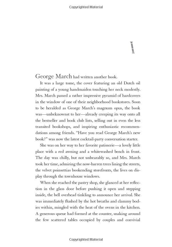 George March’s latest novel is a smash hit. None could be prouder than Mrs. March, his dutiful wife, who revels in his accolades and relishes the lifestyle and status his success brings.