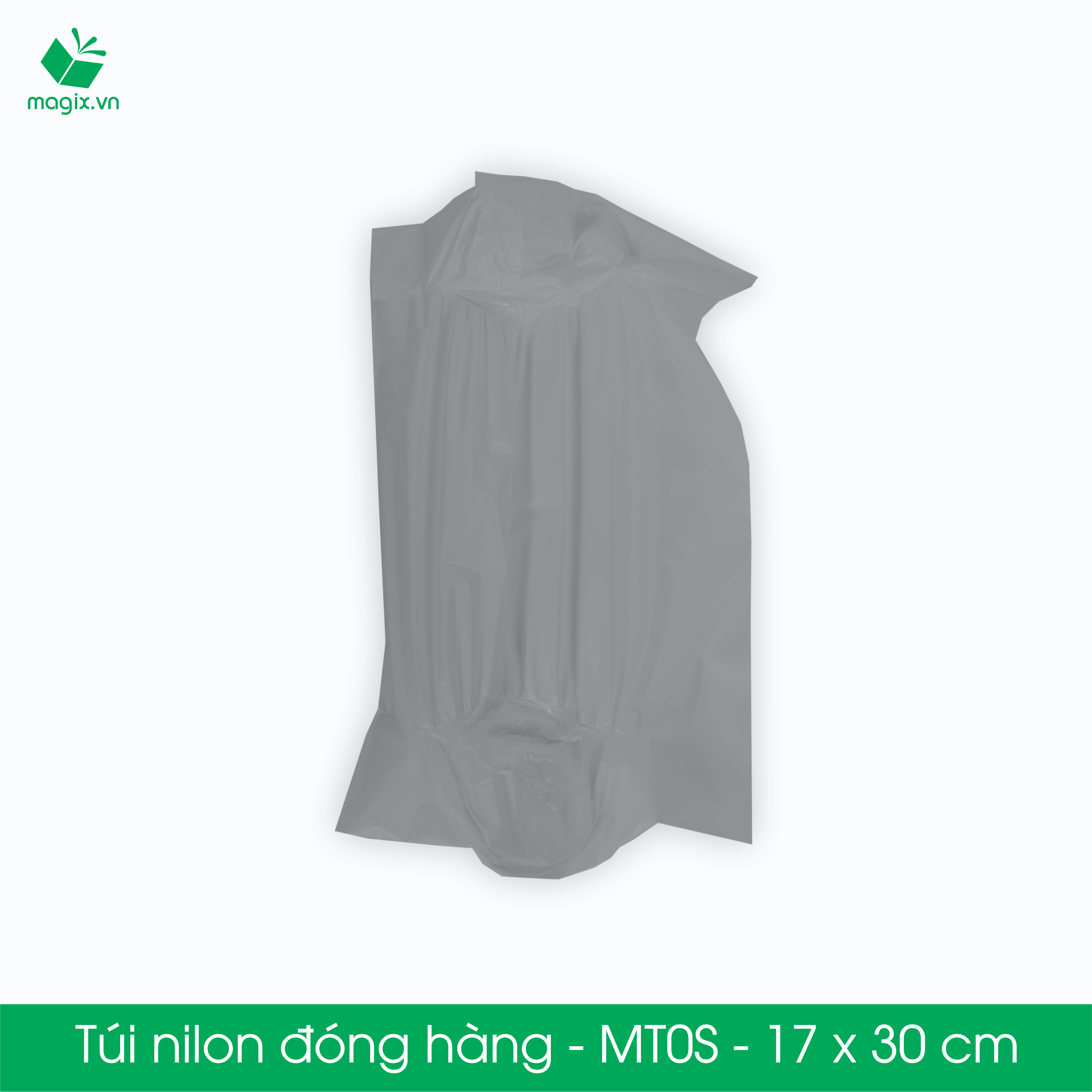 Độ dày: ~50 - 60 mic Tháng sản xuất: < 1 tháng Thông số kỹ thuật: Kích thước: 17x30 cm (kích thước phủ bì) Màu sắc: Xám Thành phần: Nhựa nguyên sinh - 1 lớp