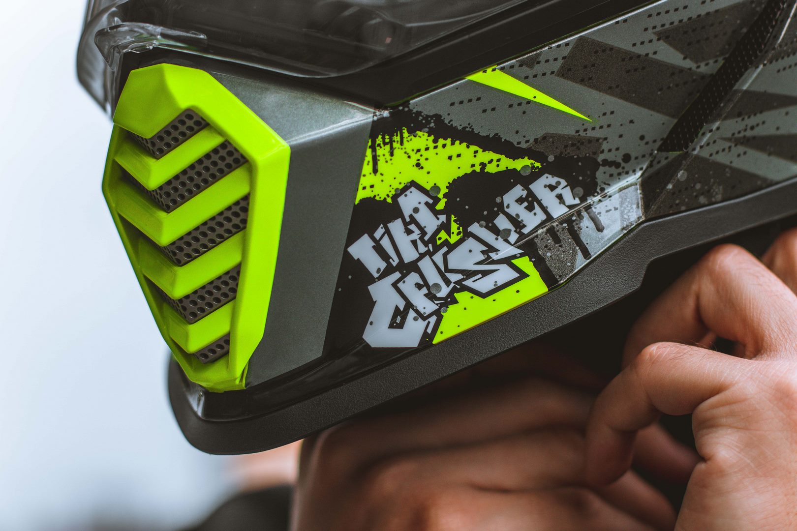 Mũ được thiết kế đặc biệt để có thể tháo cởi dễ dàng trong trường hợp khẩn cấp. Nhân viên cứu hộ có thể tháo rời phần đệm má để có thêm không gian tháo mũ bảo hiểm mà vẫn hạn chế di chuyển đầu và cổ người lái xe. Bằng cách giữ cố định mũ rồi luồn tay qua phần dây quai, kéo các miếng đệm má một cách cẩn thận, trượt chúng qua phần dây quai và kéo ra khỏi mũ dễ dàng.
