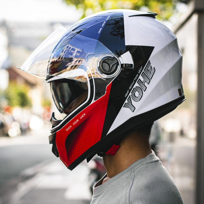 Mũ bảo hiểm Fullface Yohe 970 có kính chắn ở phía ngoài và có thể nâng cấp thêm kính màu tối chống nắng ở phía bên trong nón, giúp tăng khả năng quan sát cho người dùng khi đi trong điều kiện nắng chói. Kính trong suốt bên ngoài kết hợp với kính màu tối bên trong thích hợp cho cả khi đi đường ngày hay đêm