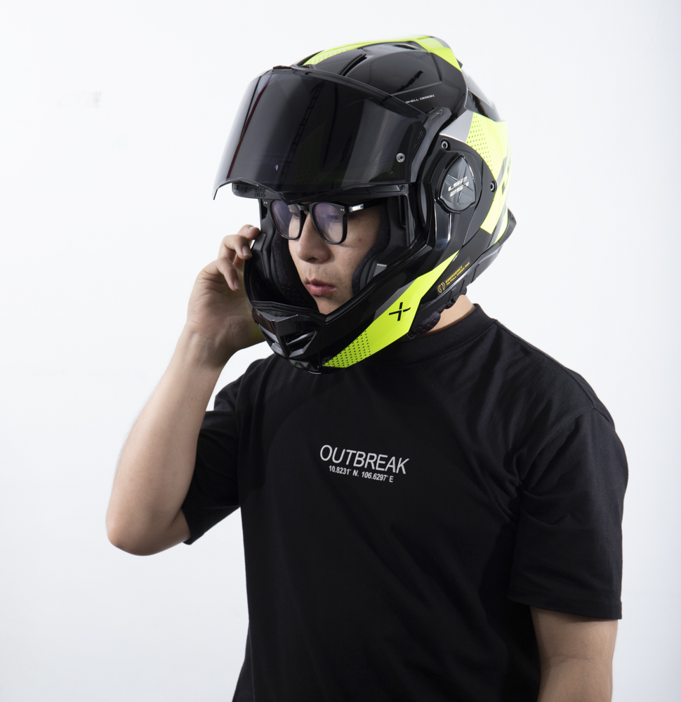 Bên cạnh kính chắn ngoài, mũ bảo hiểm LS2 FF901 còn có thể nâng cấp thêm kính phụ màu tối bên trong giúp bảo vệ mắt người đội khỏi ánh nắng mặt trời. Kính trong có thể di chuyển lên, xuống dễ dàng nhờ hệ thống lật mở nhanh chóng được bố trí bên hông mũ. Cho phép người dùng nhanh chóng lật kính trong lên khi di chuyển vào những khu vực thiếu sáng như đường hầm.
