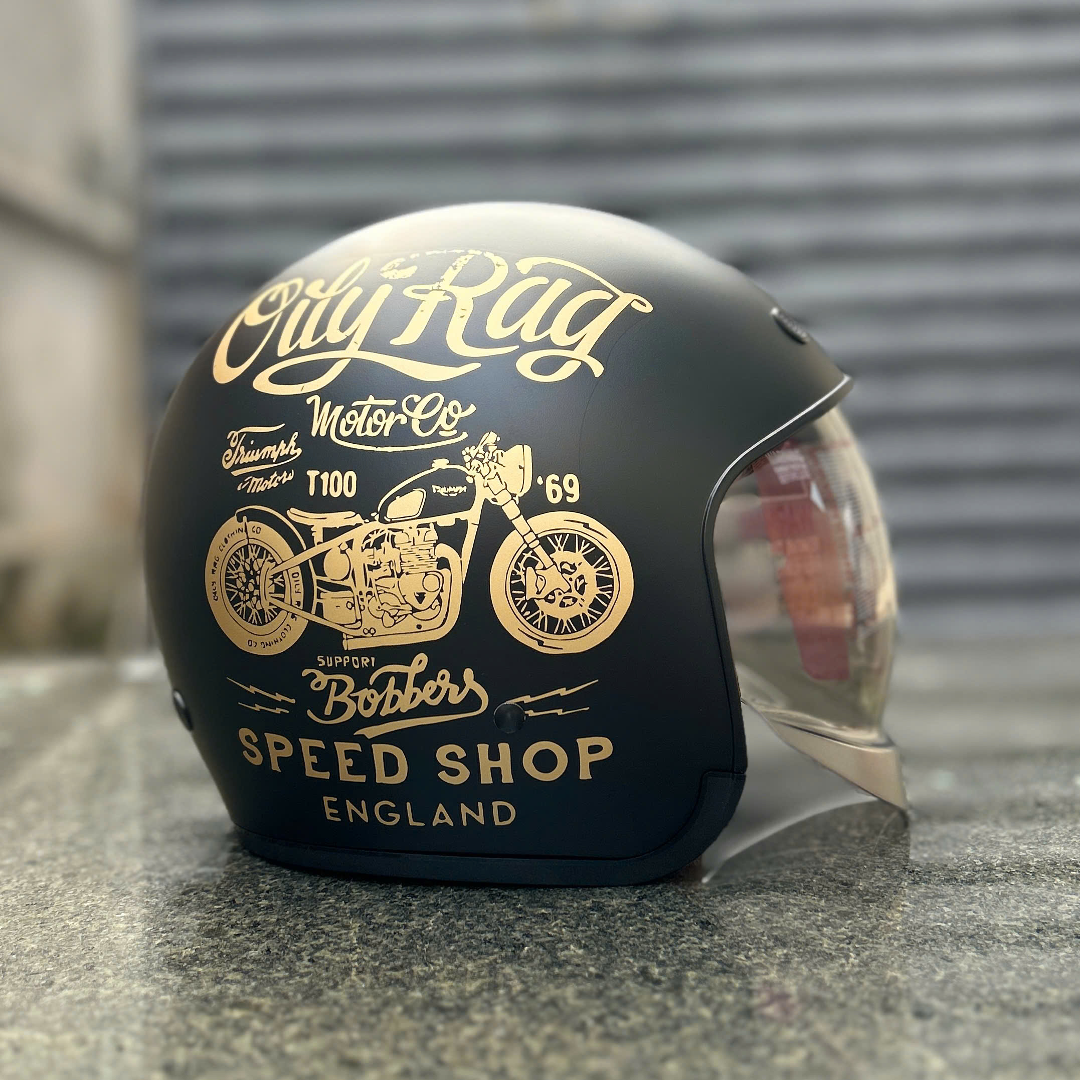 THIẾT KẾ THÔNG MINH - Phong cách thiết kế: mũ kiểu 3/4 kèm kính dài, mũ được thiết kế dáng tròn, đi kèm 2 miếng ốp má, giúp tăng thêm hiệu quả bao phủ, bảo