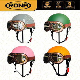 Mũ bảo hiểm xe máy 1/2 RONA haly viền bạc kèm kính phi công viền đồng cao cấp chính hãng - Thương hiệu: RONA - Do công ty TNHH SX TM ĐT ANH DUY