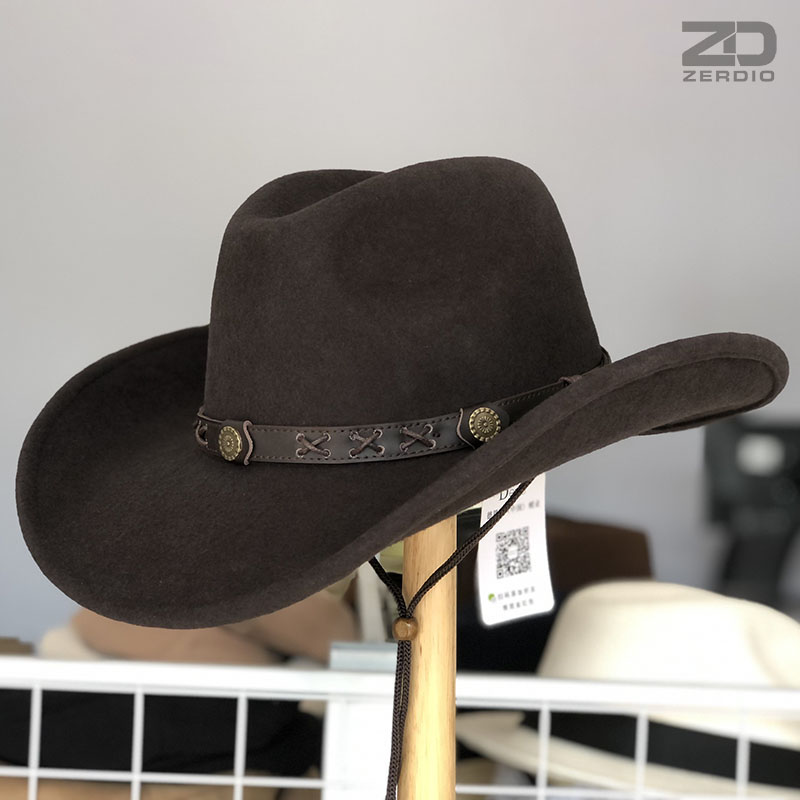 Mũ Cao Bồi Nam Xịn, Chất Liệu Lông Dê Nội Mông Cổ Phong Cách Cao Bồi Miền Viễn Tây MP054 - ZERDIO