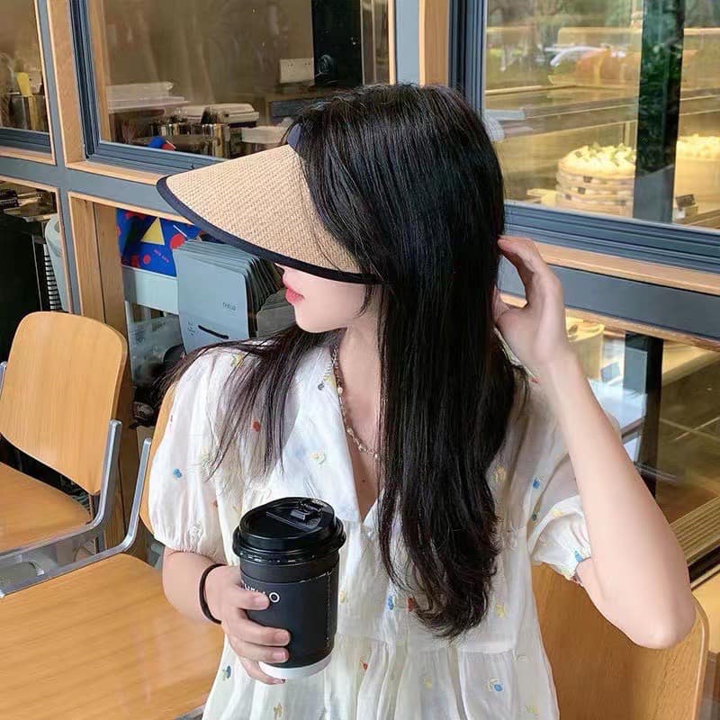 Mũ Cói Nửa Đầu Chống Nắng, Nón Đi Nắng Hở Chóp Vành Rộng Chống Tia UV 1. Thông tin sản phẩm - Chất liệu: cói tổng hợp - Màu sắc: nâu, kem, đen - Kích