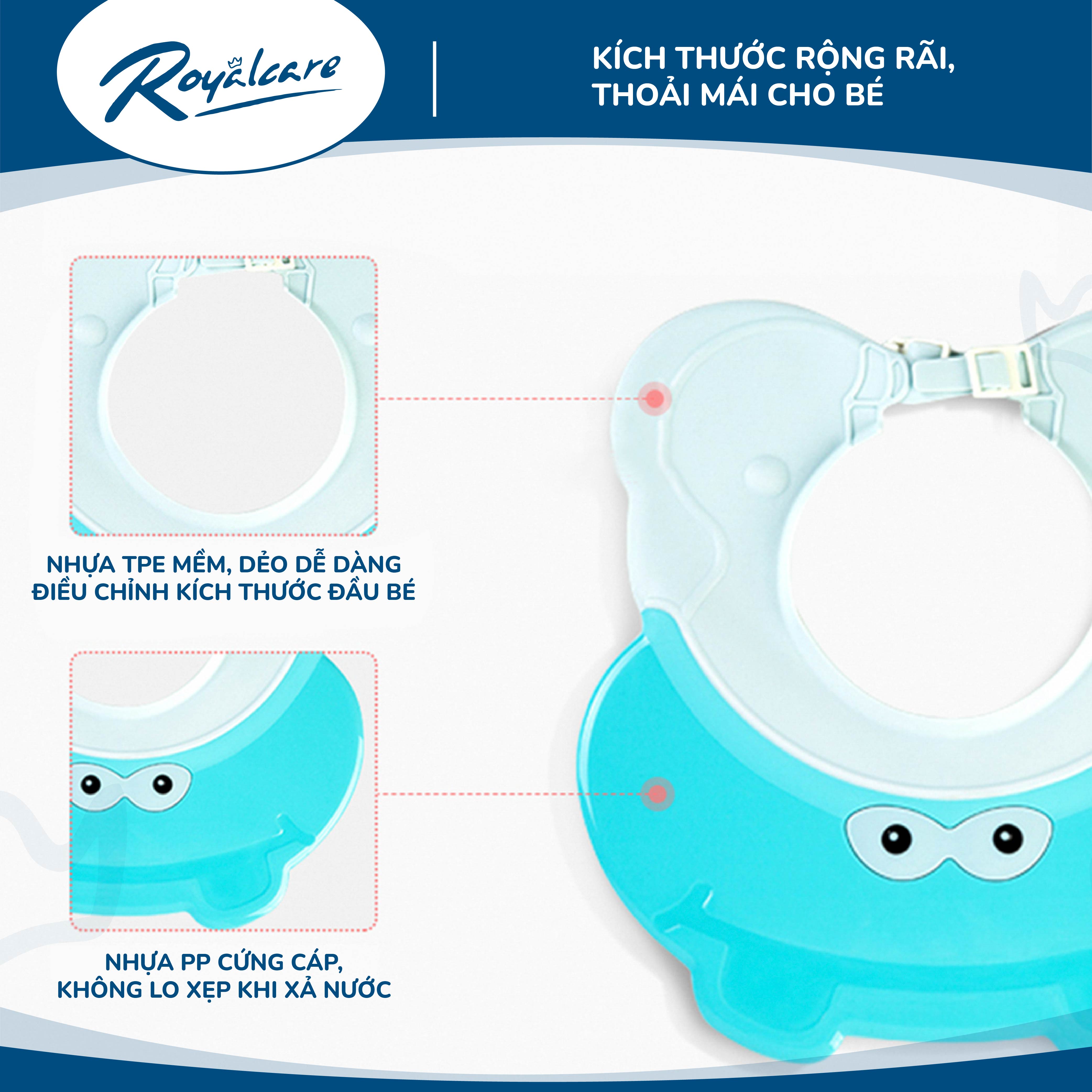 Mũ đội đầu Hà Mã Royalcare 702 sẽ mang đến cho trẻ những phút giây thoải mái khi tắm gối, bé không còn cảm thấy khó chịu khi bị nước bắn vào mắt.