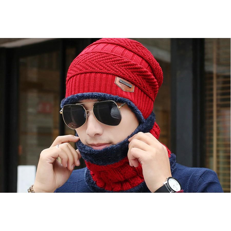 Mũ len nam nón len nam khăn choàng cổ thời trang Hàn Quốc Hàng nhập Chất len 2 lớp Bộ sản phẩm gồm nón và khăn y hình