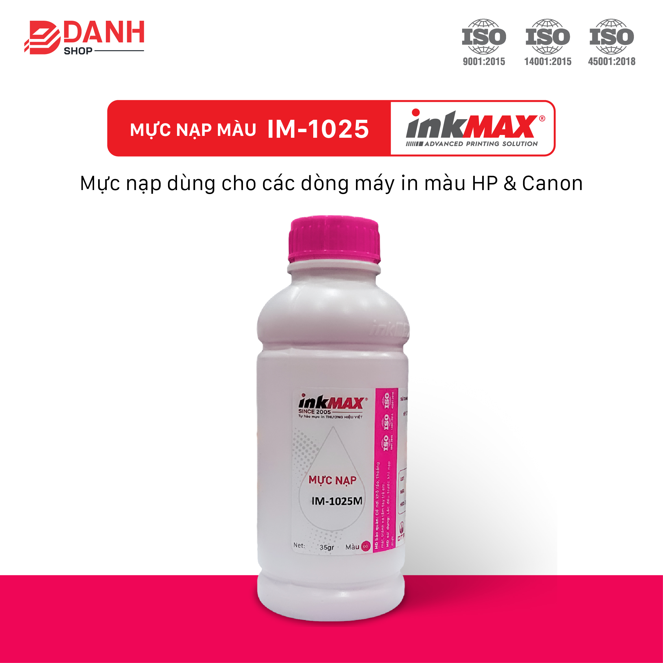 Mua tại TiktokThông số kỹ thuật: Mưc nạp inkMAX IM-1025 • Loại mực in: Mực in HP Laser màu inkMAX IM-1025 • Màu sắc: Cyan – Mangenta – Yellow – Black ( Xanh - Đỏ - Vàng - Đen ) • Mã hộp mực : HP 126A CE310/ CE311/ CE312/ CE313 • Loại máy in sử dụng : HP Cp1025/ CP1025W • Số luợng trang in: 1200 trang/ màu đen, 1000 Trang/ mực màu • Chất lượng Bản in Đẹp, Hình ảnh sắc nét. Màu sắc trung thực. • Độ bền cao, Mực máy in Laser màu inkMAX IM-1025 Có thể Nạp lại 2 đến 3 lần mà không phải thay linh kiện.