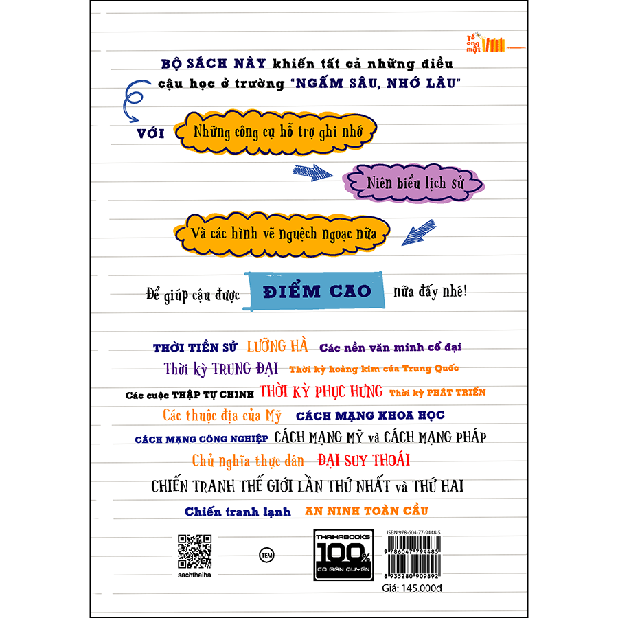 Muốn học giỏi lịch sử không? Tớ cho cậu mượn vở là một bộ sách tóm lược một cách toàn diện lịch sử thế giới từ những giống loài đầu tiên đến tận thời đại kỹ thuật số. Những kiến thức được tóm lược theo một hệ thống vô cùng dễ hiển, với những kiến thức mấu chốt được nhấn mạnh và đúc kết lại cuối mỗi bài. Đây là một tài liệu vô cùng thú vị dành cho tất cả các bạn học sinh muốn tìm hiểu về lịch sử thế giới, và cả những người lớn muốn kiểm tra lại kiến thức của mình. Lịch sử thế giới được tóm gọn trong 3 cuốn sách mỏng trình bày như một cuốn vở ghi chép thay cho những cuốn sách hàn lâm dày cộp, chắc chắn cuốn “vở” này sẽ làm cho nỗi sợ trả bài môn lịch sử thế giới biến mất.