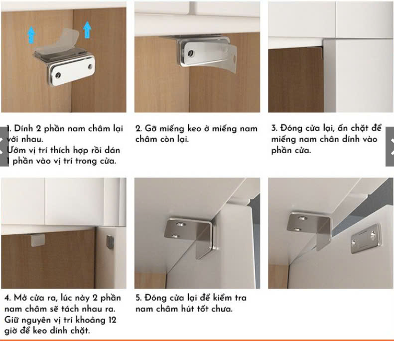Bộ Nam Châm Gắn Cửa Lực Hút Cực Mạnh - Gắn Chốt Tủ Quần Áo, Ngăn Kéo, Tủ Bếp Tiện Lợi