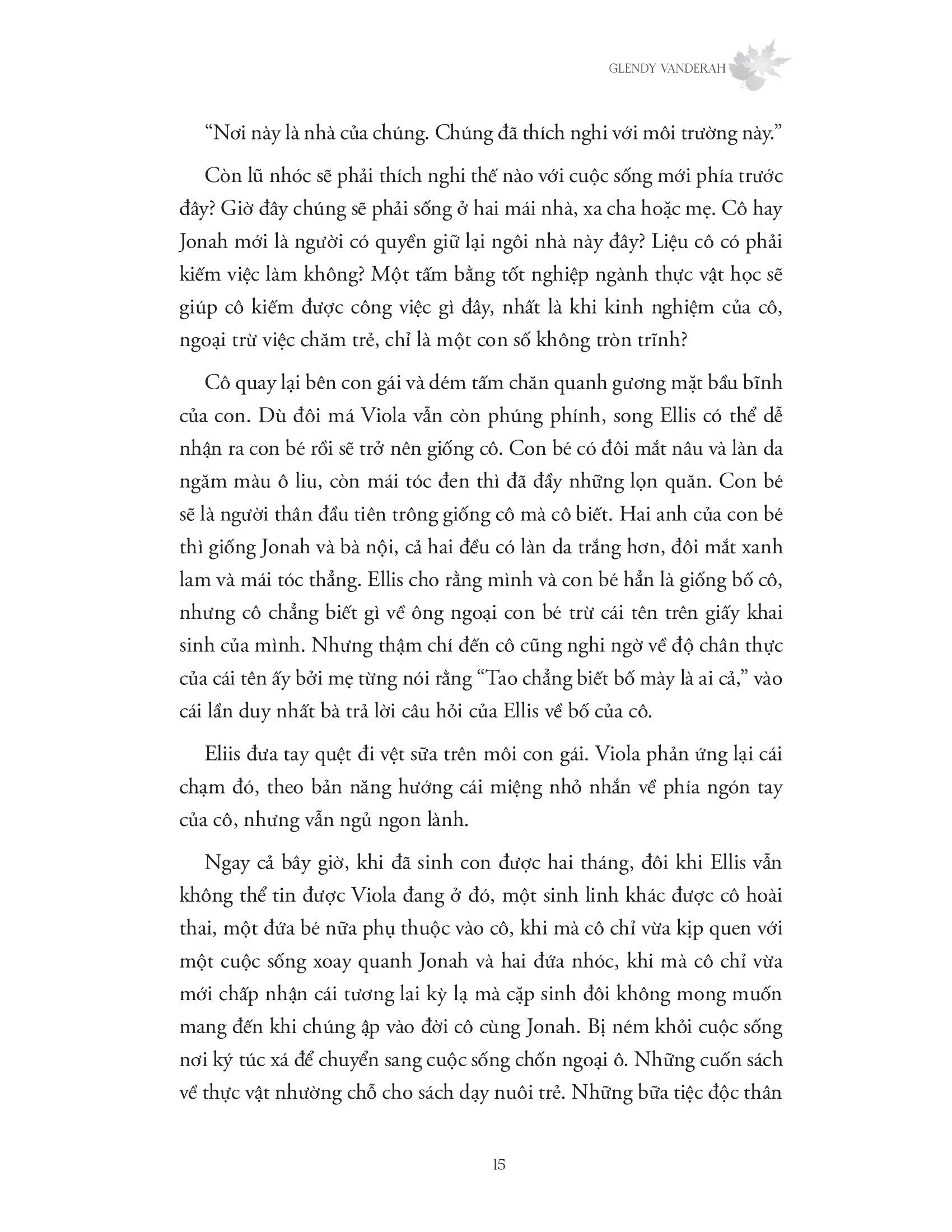 Sau Nơi khu rừng chạm tới những vì sao, Glendy Vanderah (tác giả sách bán chạy theo bình chọn của Wall Street Journal) đã tiếp nối những cảm xúc thứ tha và chữa lành ấy bằng một cuốn tiểu thuyết tuyệt diệu về tình yêu, sự mất mát và hành trình khám phá bản thân, The light through the leaves.