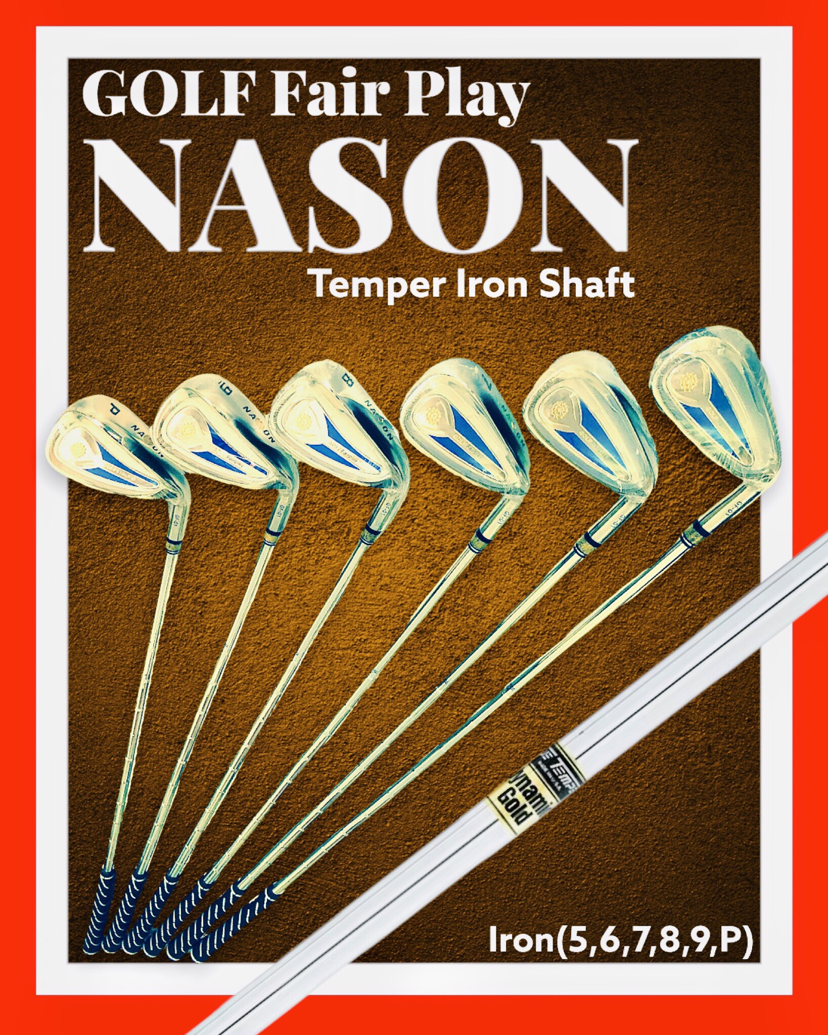 - 6 Gậy golf Iron set 5,6,7,8,9,P (28-32-36-40-44-48) NASON GF01 R Flex Steel Shaft.