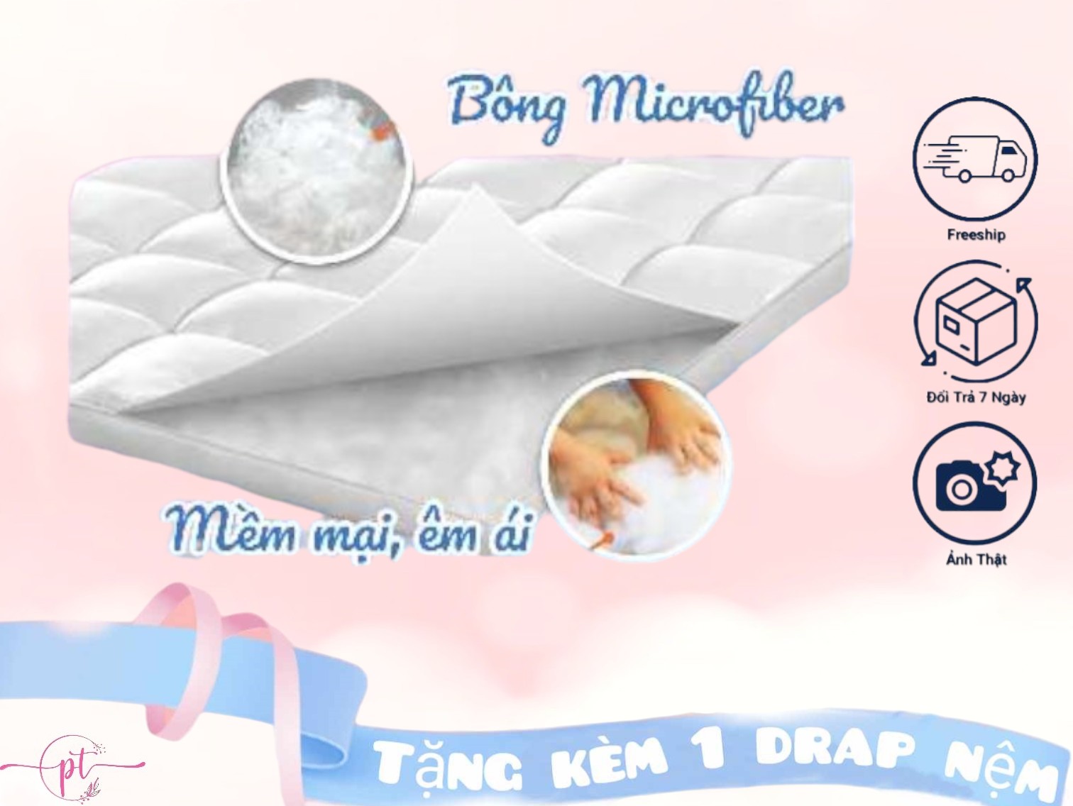 CAM KẾT: Cam kết đổi trả nếu hàng không giống mô tả và hoàn tiền 100% nếu sản phẩm lỗi. ────()()()────()()()──── Cấu tạo nệm Lớp Ngoài: Vỏ nệm Cotton dệt mật độ cao với khả năng thấm hút cực tốt, kháng khuẩn, chống bụi gần như tuyệt đối. Lõi trong: Bông Microfiber siêu mịn (lông vũ nhân tạo) nhập khẩu cao cấp, tạo cảm giác mềm mại bồng bềnh và không bị xẹp lún như gòn ép trong nước. Những lợi ích của nệm bông xuất Nhật Mang lại cảm giác êm ái, mềm mại và bồng bềnh tuyệt vời cho bạn sau một ngày dài làm việc mệt mỏi. Thoáng mát, không hầm bí lưng nhờ lớp vải Cotton dệt cao cấp. Giúp gia tăng sự mềm mại cho tấm nệm đã cũ hoặc quá cứng của bạn. Có thun ràng 4 góc giúp cố định tốt trên nệm, không gây cảm giác sột soạt do ma sát giữa 2 mặt nệm. Bạn có thể dùng Topper để sử dụng trải sàn như một tấm nệm thực thụ. Hướng dẫn sử dụng và bảo quản Nệm được hút chân không nên khi mua về, bạn hãy mở và để 12 tiếng đồng bên ngoài, đồng thời giũ và vỗ đều để nệm hồi lại hình dáng và độ êm ái như ban đầu. Khi nệm bị bẩn, bạn dùng bàn chải và xà phòng hoặc baking soda để vệ sinh chỗ nệm bị dơ. Tránh tuyệt đối việc giặt máy hoặc ngâm toàn bộ nệm vào nước vì có thể làm ảnh hưởng đến chất liệu bông bên trong. ────()()()────()()()────