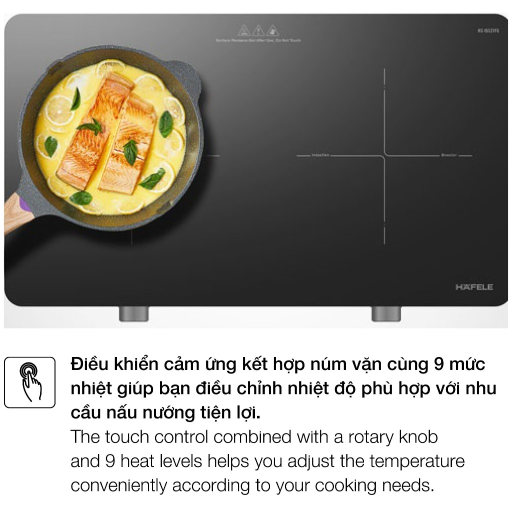 Bếp điện từ đôi Hafele HS-I5521FG dòng bếp từ cao cấp với thiết kế nhỏ gọn dễ dàng lắp đặt, đồng thời sở hữu công suất mạnh mẽ giúp bạn chuẩn bị món ăn nhanh chóng. Ngoài ra, bếp từ đôi HS-I5521FG còn được tích hợp các tính năng hiện đại như Booster, hẹn giờ, chế độ giữ ấm,… giúp việc nấu ăn trở nên thật đơn giản. Công suất lớn lên đến 3000W, xào nấu nhanh chóng. Mặt kính ceramic Kanger chịu lực, chịu nhiệt cao và dễ dàng vệ sinh sau khi sử dụng. Điều khiển cảm ứng kết hợp núm vặn cùng 9 mức nhiệt giúp bạn điều chỉnh nhiệt độ phù hợp với nhu cầu nấu nướng tiện lợi. Chức năng giữ ấm với 3 mức nhiệt 45 độ C / 65 độ C / 85 độ C, phù hợp với các món ninh, hầm,… Cảm biến nhận diện xoong nồi giúp nhận diện kích thước đáy nồi và chỉ phát hiện và truyền nhiệt đến vùng này, qua đó tiết kiệm điện hiệu quả. CHẾ ĐỘ BẢO HÀNH Để kích hoạt chế độ bảo hành, khách hàng vui lòng dùng ứng dụng quét QR code trên điện thoại hoặc mở ứng dụng