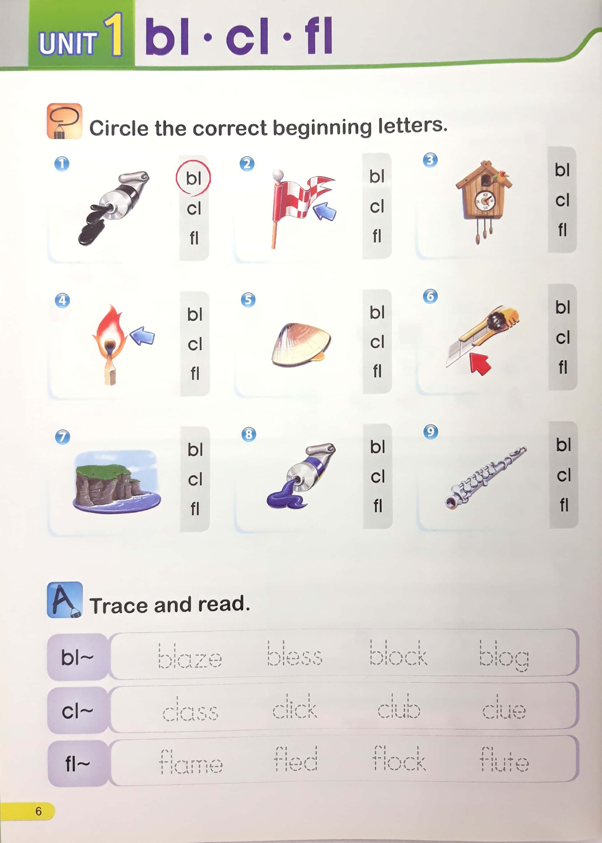 Phonics 4 page 9 #smart phonics4 unit1 bl cl fl