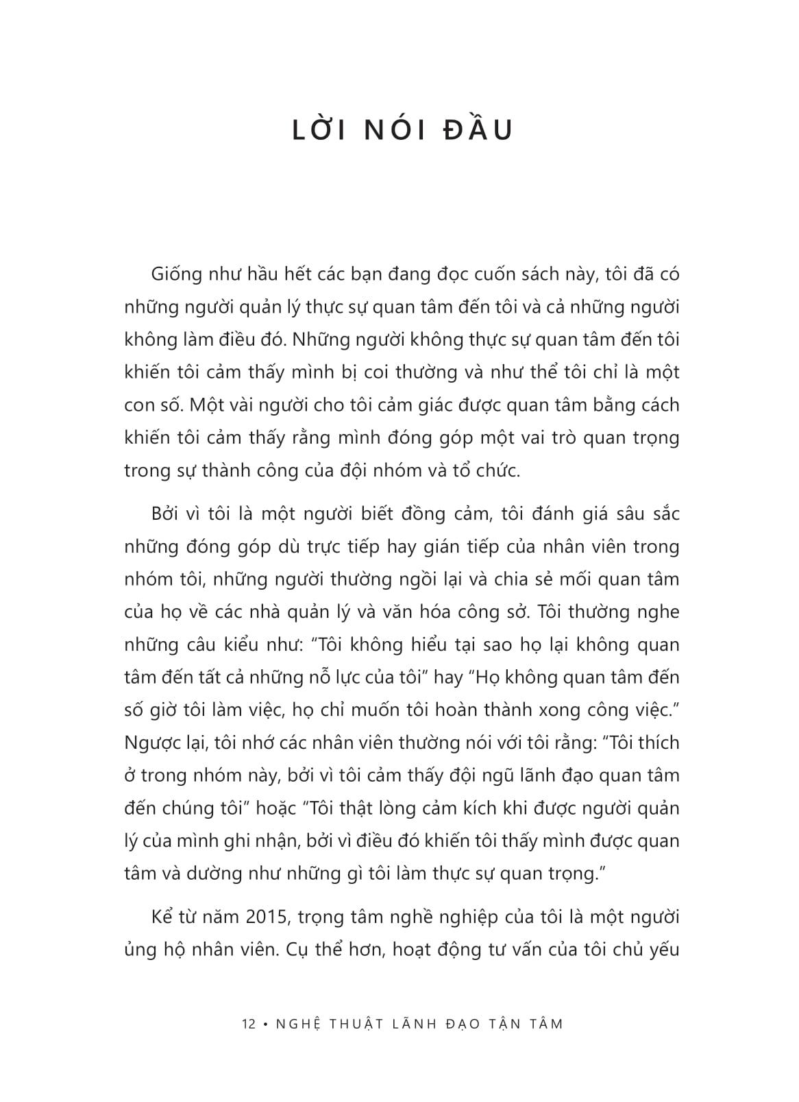 Nếu bạn là những nhà lãnh đạo muốn sử dụng lòng nhân ái và sự quan tâm để dẫn dắt đội nhóm của mình đạt tới thành công, hãy bắt đầu hành trình của bạn từ chính cuốn sách này.