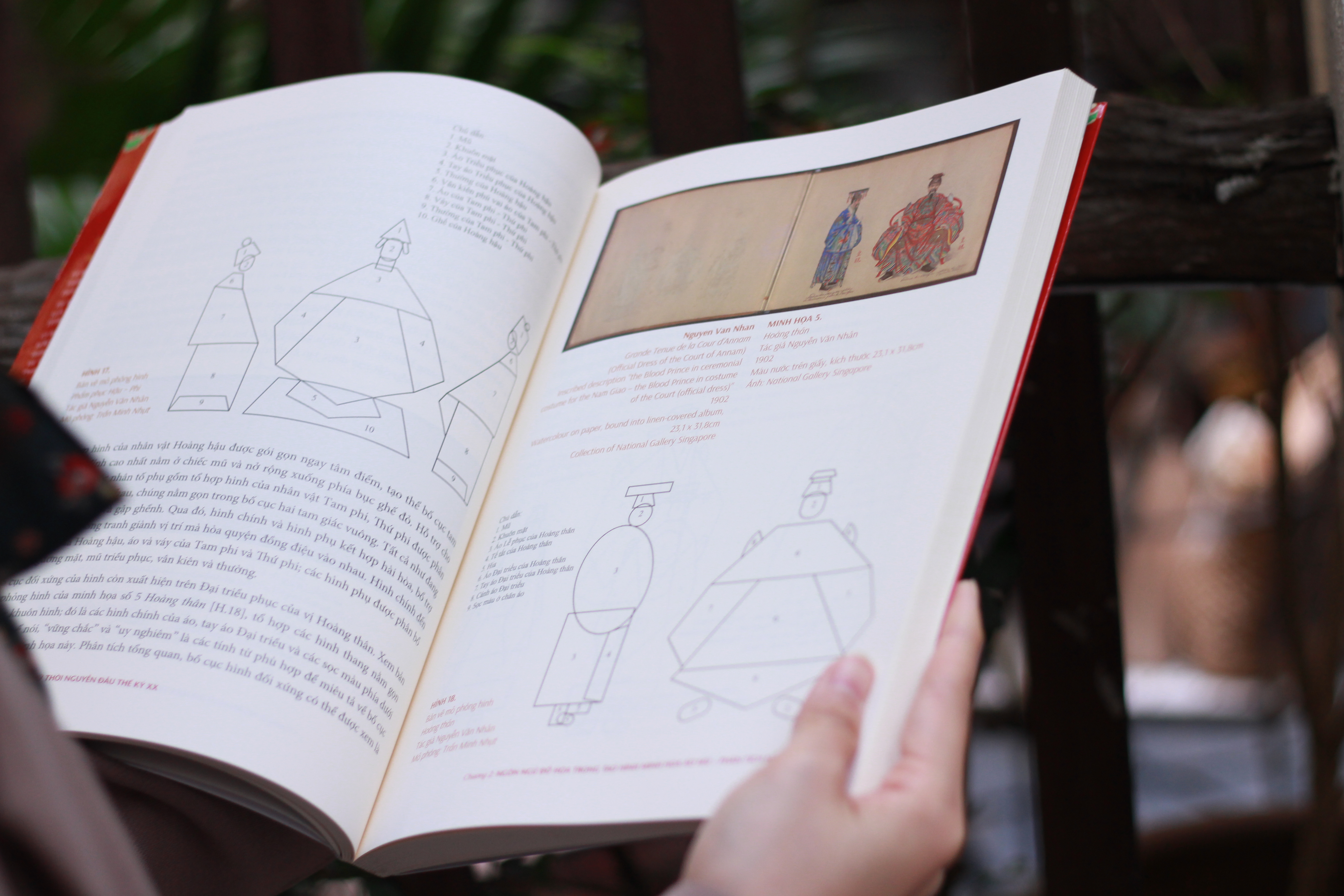 Nhằm giúp độc giả hiểu rõ hơn các giá trị (mỹ thuật, lịch sử, văn hóa - xã hội) của bộ tranh Grande tenue de la Cour d’Annam, thân thế - sự nghiệp cùng vị thế của họa sĩ Nguyễn Văn Nhân, tác giả Trần Minh Nhựt - Thạc sĩ chuyên ngành Lý luận và Lịch sử Mỹ thuật, bằng kinh nghiệm và chuyên môn của mình, đã dành một dung lượng tương đối của công trình để tập trung phân tích mỹ thuật học (đường nét, mảng, hình, màu sắc, nhịp điệu) của ngôn ngữ đồ họa trong tạo hình minh họa áo mũ, cũng như diễn giải kỹ càng về nghệ thuật minh họa và cuộc gặp gỡ phong cách tạo hình phương Tây ở khía cạnh khoa học màu sắc và ánh sáng, và tỷ lệ nhân thể.