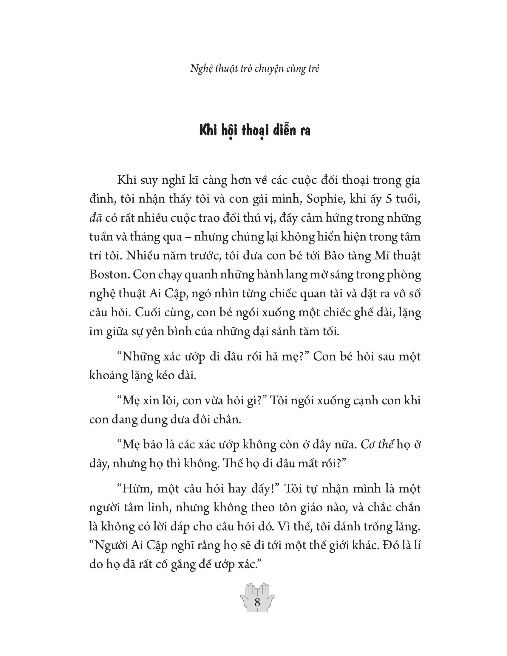 Cuốn sách này bao gồm những hướng dẫn để cha mẹ thay đổi cách trò chuyện với con, từ đó khuyến khích sự sáng tạo và củng cố mối quan hệ gia đình. Bạn sẽ tìm ra những cách tư duy mới về việc nuôi dạy con: theo một chuỗi những cuộc đối thoại. Đồng thời, bạn cũng khám phá đưcọ một nghệ thuật trò chuyện mới, cho phép bạn thành thục cách trò chuyện cùng con để nuôi dạy con trở thành môt người đồng cảm, sáng tạo và ham học hỏi.